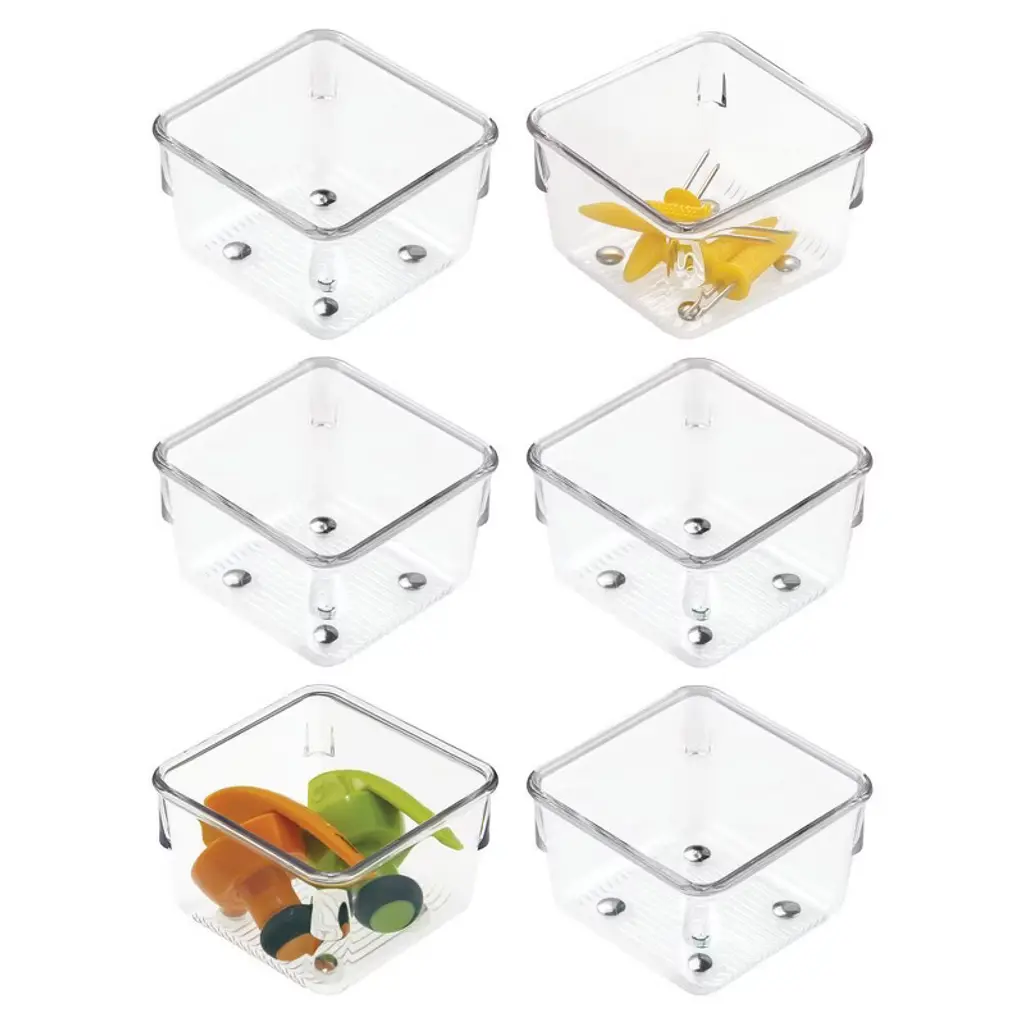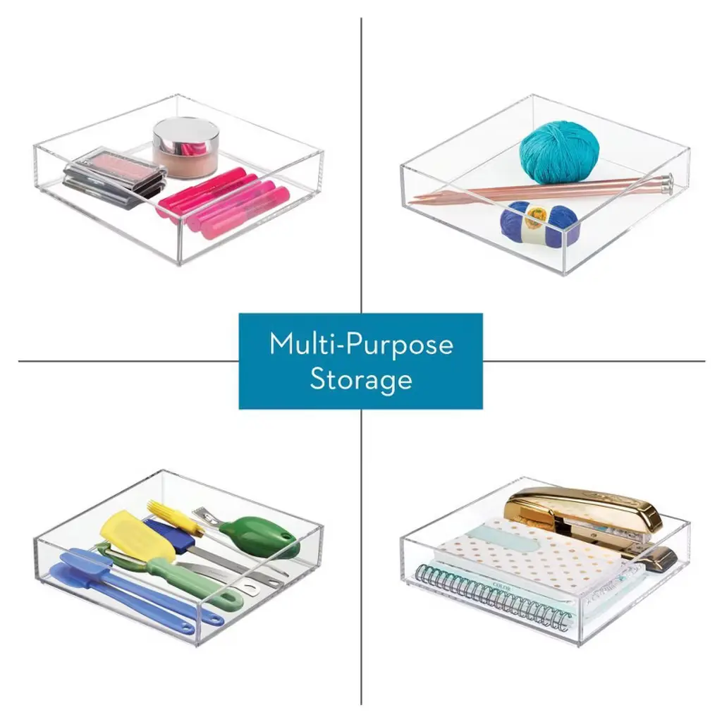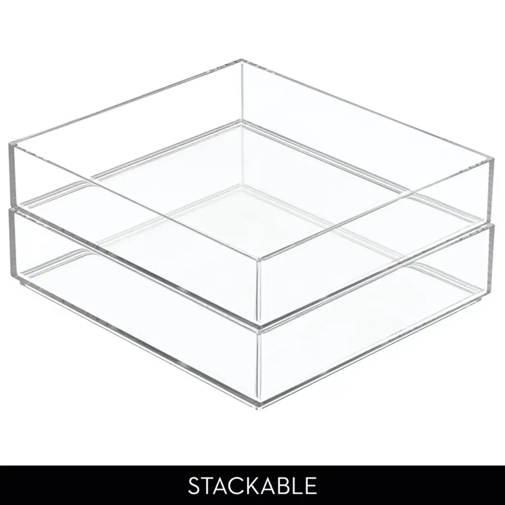 Create a home for each and every one of your beloved cosmetics with our iDesign Clarity Makeup Drawer Organizer. This clear plastic organizer allows you to group items together, creating a system of order for unruly drawers. Its stackable design conserve space while tailoring to your unique storage requirements. Divide and conquer challenging drawer clutter with this versatile design that will enable you to arrange your belongings based on your organizational challenges.