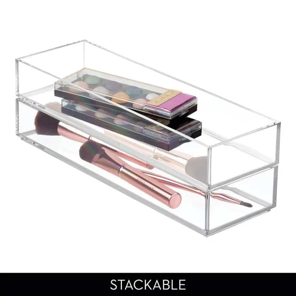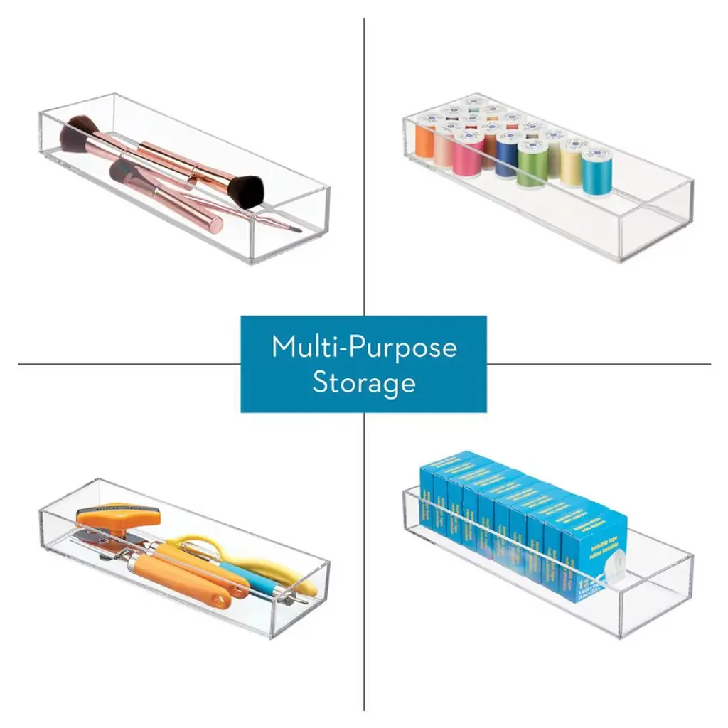Create a home for each and every one of your beloved cosmetics with our iDesign Makeup Drawer Organizers. This clear organizer allows you to store items more efficiently in any standard-size or deep drawer. Divide and conquer challenging drawer clutter with this versatile design that allows you to arrange based on your organizational challenges-from work supplies in the office to cosmetics in the bathroom-or anywhere else that needs organizing. With iDesign, you can live simply every day.