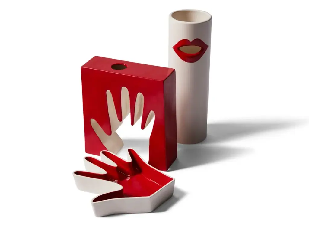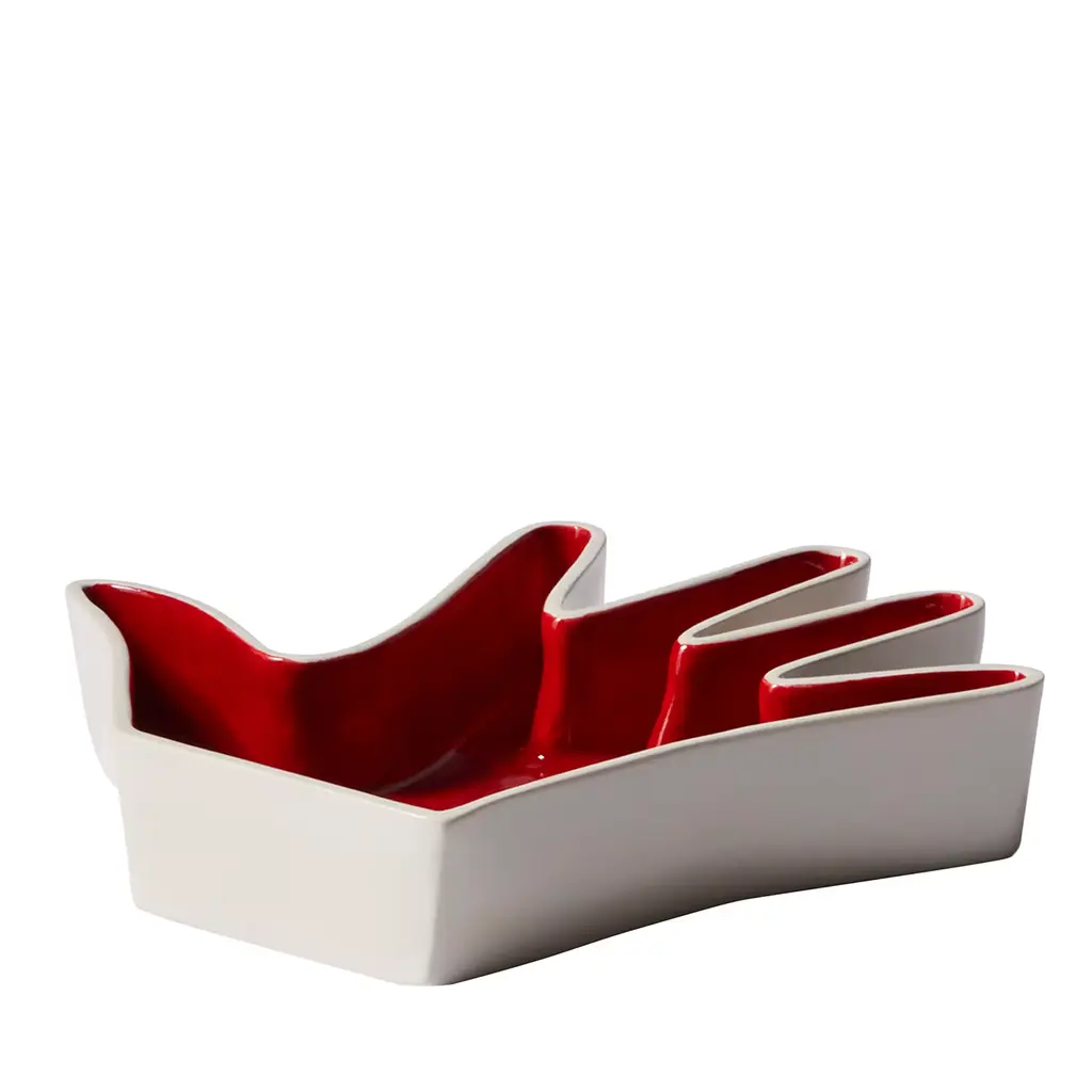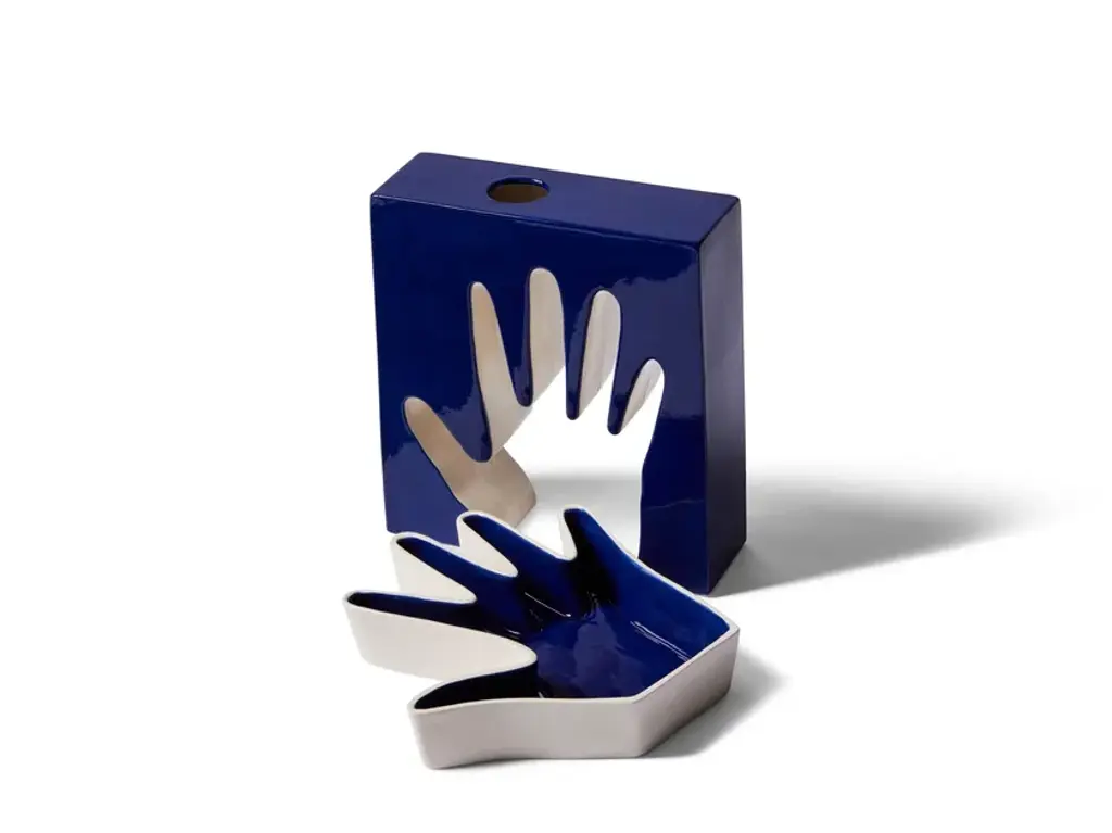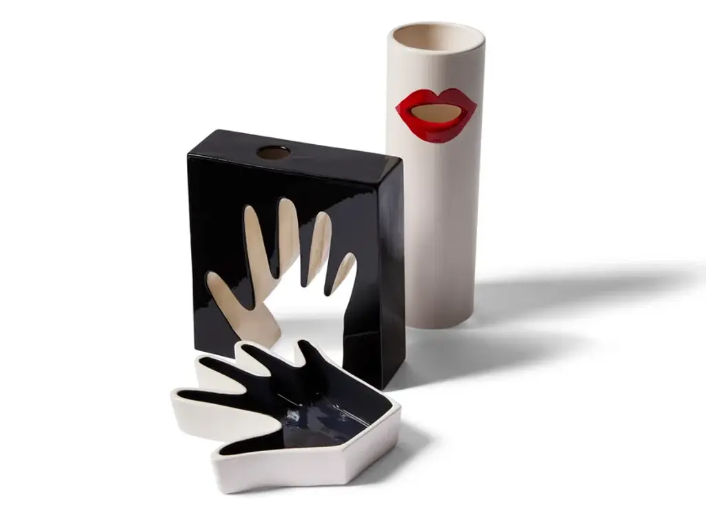 Impronta - Mano is a ceramic pin tray. In an interplay of positive and negative spaces, the subject of the other two accessories in the collection is the hand. Its silhouette becomes expressive empty space in a vase, hollowed at the centre by the imprint that one imagines to be the hand of Parisi himself, with a hole on the top surface in which a single flower can be placed. Meanwhile the trinket tray outlines the shape of another open hand ready to cradle small objects. Both the Mano vase and trinket tray are available in contrasting colours selected by the company, perfectly attuned to the original choices made in the 1960s by Parisi: black and white, red and white and in an exclusive online version in blue and white that will be available on the Cassina e-commerce platform by the first half of 2023.In the 1960s, Ico Parisi and his wife Luisa’s creative talent and multifaceted approach prompted them to try their hand at using more noble materials like ceramics to create decorative art objects. The universe of Ico Parisi therefore comprises not only furniture but also small but brilliant accessories, capable of expressing the maestro’s creative genius. Thanks to attentive philological research and development conducted in partnership with Roberta Lietti, curator of the Archivio del Design di Ico Parisi [Ico Parisi Design Archives], today Cassina presents the Impronta collection, composed of three ceramic re-editions: a cylindrical vase with an opening in the shape of a mouth; a single-stem vase characterised by a hollow contour in the shape of a hand; and a trinket tray that reproduces the cast of an open hand. The Impronta collection is a celebration of Italian ceramic art, which Parisi interpreted by portraying details of the human body, specifically, the hands and the mouth, emphasized according to the typical artistic-stylistic language of the 1960s. Imbued with striking visual and chromatic impact, these elegant and functional objects are made of hand-decorated enamelled ceramic. To guarantee authenticity, each object carries the Cassina logo in the form of a decal that indicates the year of the original design and the year of the new production, together with the names of the authors and the collection.Ico Parisi and Luisa Aiani’s ceramics were first crafted in the mid-1960s. It was during that time that Parisi was engaged in extensive research into the glass and ceramic arts and designed this series in partnership with one of the most legendary hand-made ceramic manufacturers, Zanolli & Sebellin. Located in the town of Nove (Province of Vicenza), the company is today known as Zanolli Ceramiche Artistiche, with which Cassina continues to partner with for the production of these accessories.Materials: enamelled ceramic
