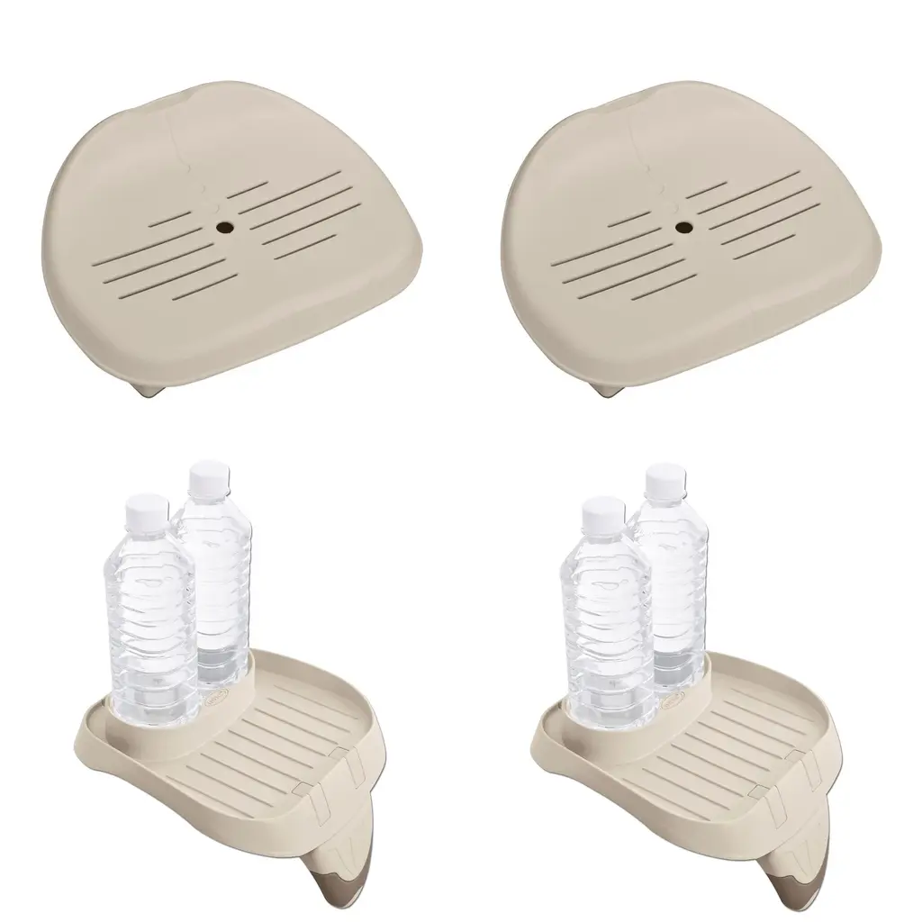 Intex Slip Resistant Hot Tub Seat 2 Pack And Cup Holder/refreshment Tray 2 Pack - 9 - Beige - 9