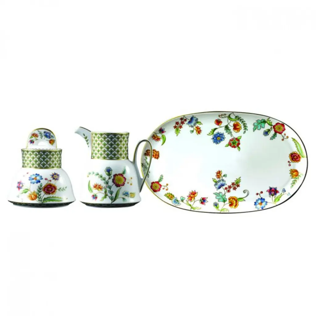 Iris Sugar Bowl & Creamer & Tray Set 11.5 X 7.3 In (Special Order)