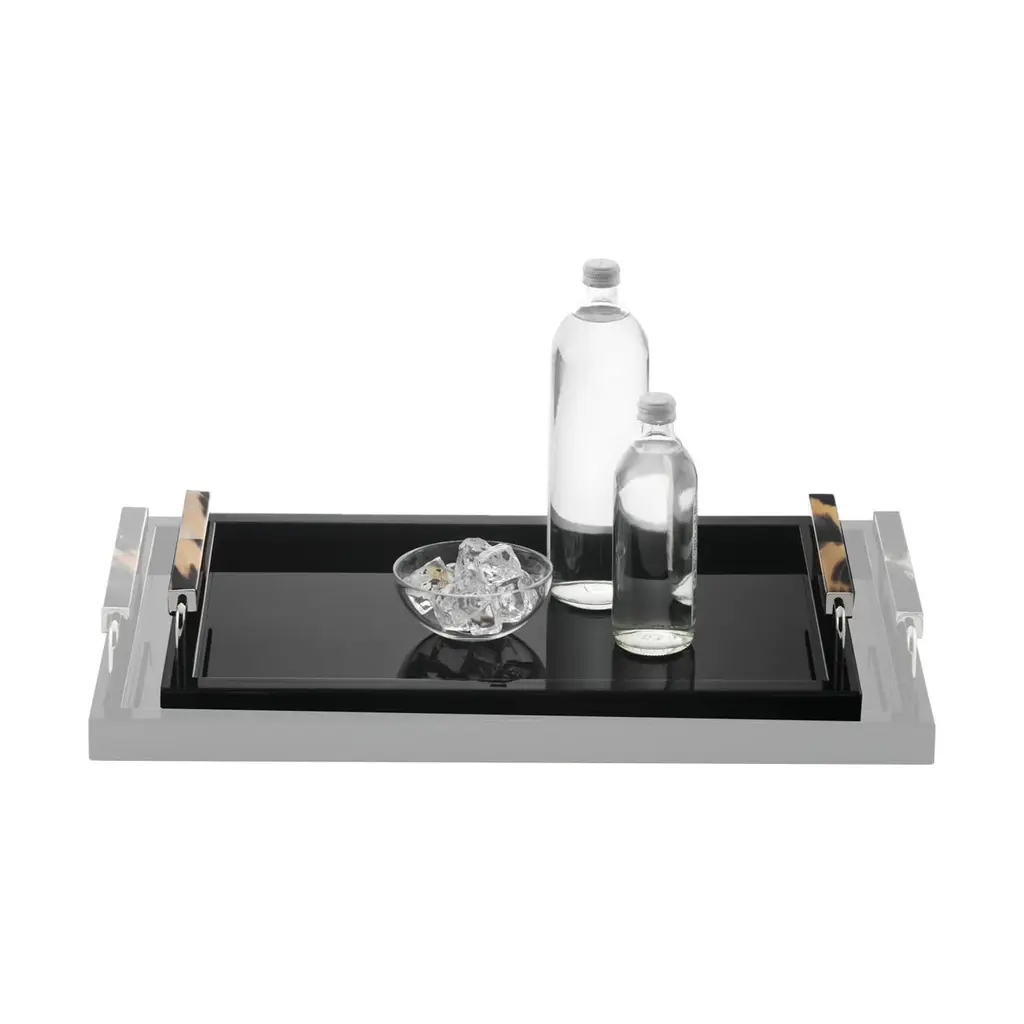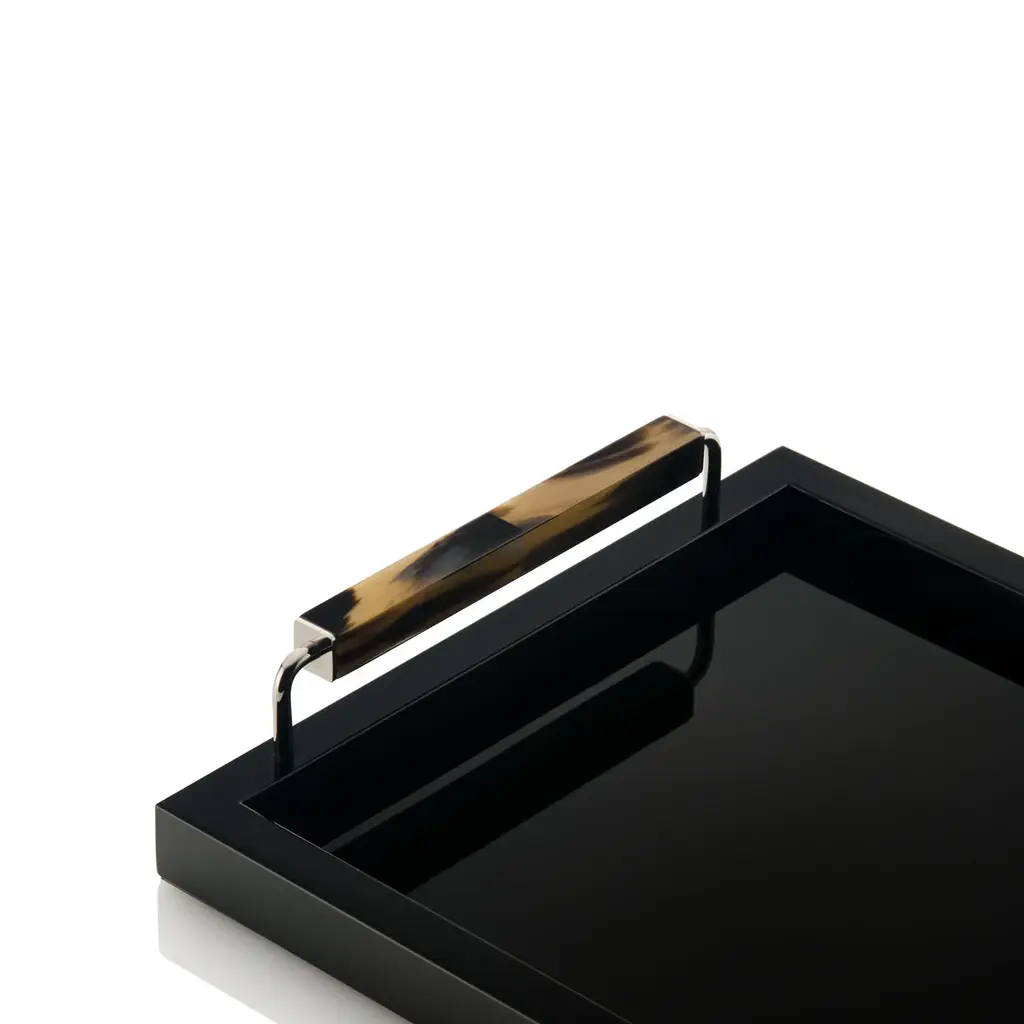 Welcome luxury and sophistication to your home with the Isacco Tray from Arcahorn. Made of wood and featuring a shiny finish, this tray is perfect for serving drinks or displaying fine glassware. With elegant natural horn handles and chromed brass accents, it adds an artistic touch to any setting. Available in two sizes perfect for use as decor or for serving. Highlights