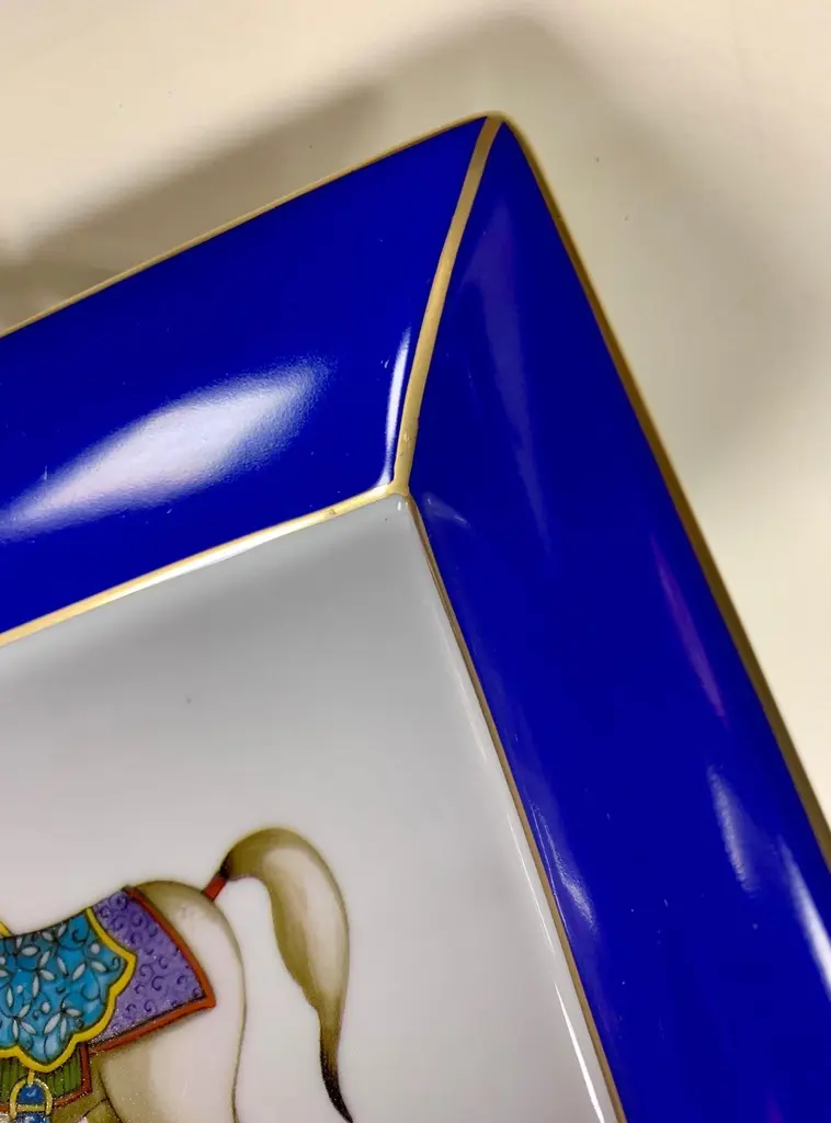 Italian Craftsmanship Hand Painted Porcelain Tray Blue And Gold Colors