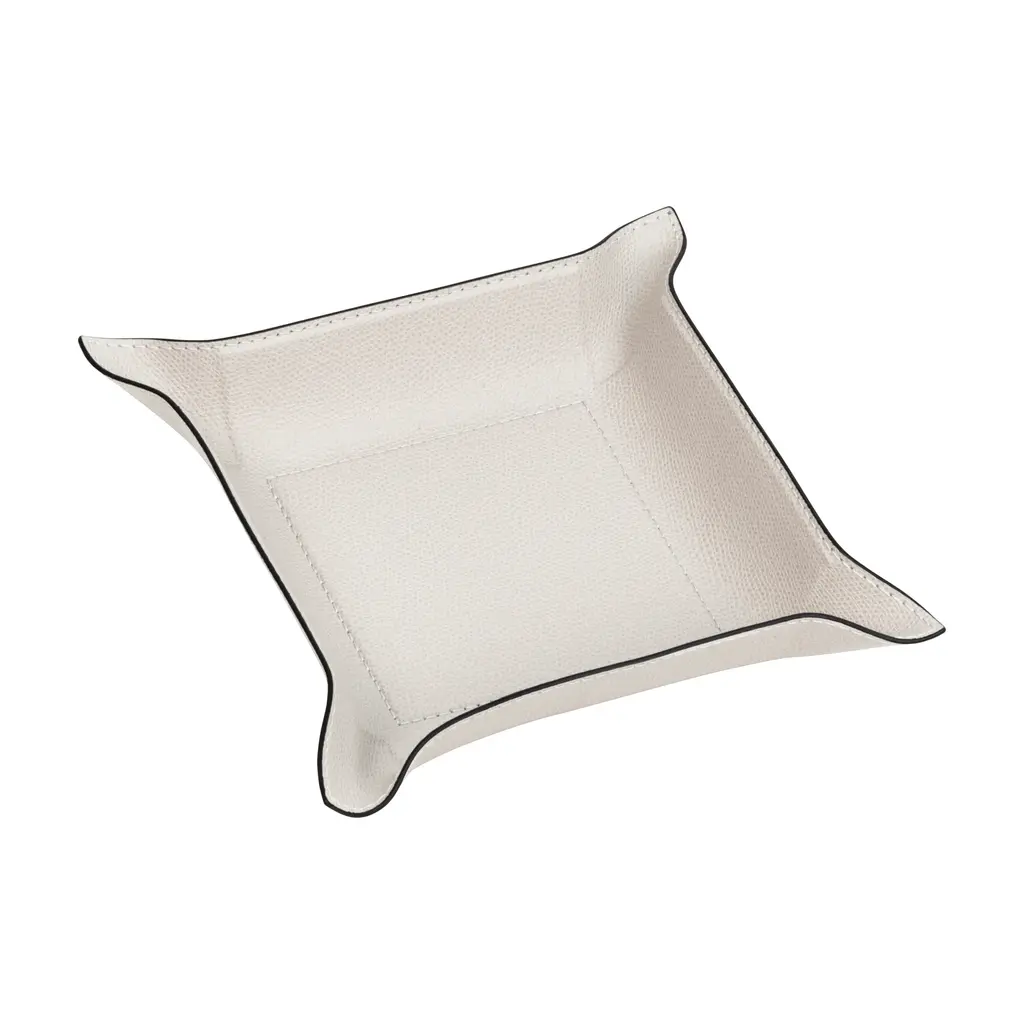 A clever blend of structure and flexibility, the Jack Valet Tray from Giobagnara offers a playful yet sophisticated way to stay organized. Expertly handcrafted in Italy, its metal structure is completely enveloped in finely textured calfskin leather. The innovative design features a rigid center to keep items secure, while the four sides can be bent and shaped as desired, making it a tactile and endlessly charming home for your daily essentials. Highlights: