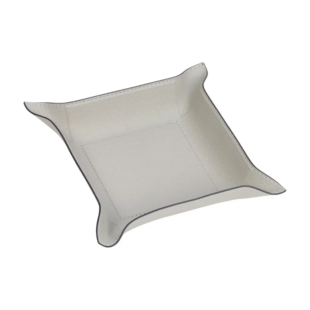 A clever blend of structure and flexibility, the Jack Valet Tray from Giobagnara offers a playful yet sophisticated way to stay organized. Expertly handcrafted in Italy, its metal structure is completely enveloped in finely textured calfskin leather. The innovative design features a rigid center to keep items secure, while the four sides can be bent and shaped as desired, making it a tactile and endlessly charming home for your daily essentials. Highlights: