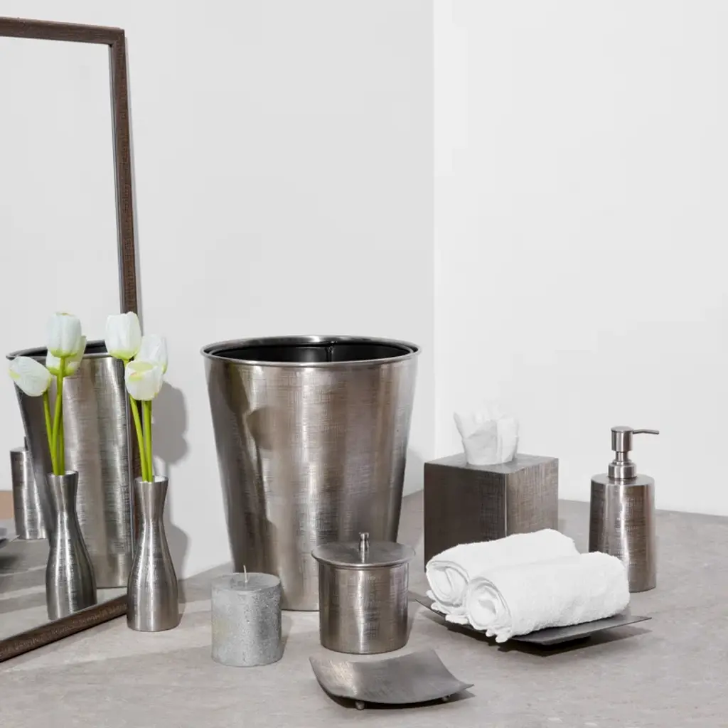 Rikan's signature patented Jacquard pattern in Stainless Steel of Gold Brass. This amenity tray is used to store 3 face towel rolls. Each tray is a part of their respective sets, with the Gold variant endorsed by and supplied to The Four Seasons Hotel in Dubai. Bring hotel luxury home. Part of a full set