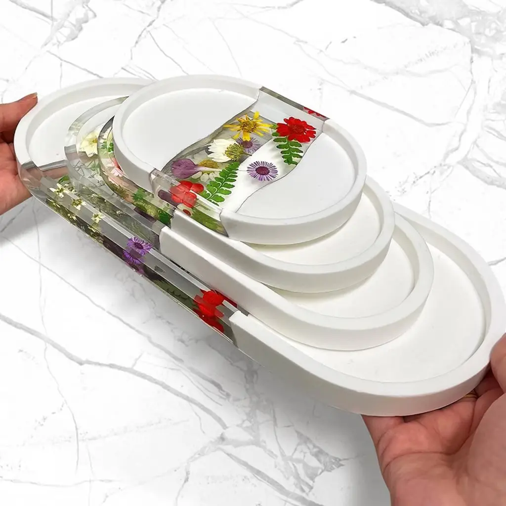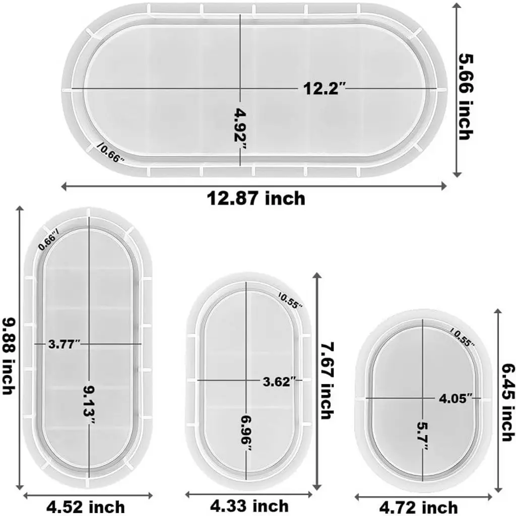 Jdiction Oval Silicone Mold Set - 12"/9"/7"/5.7" Resin Tray For Jewelry Storage, Clay & Gypsum