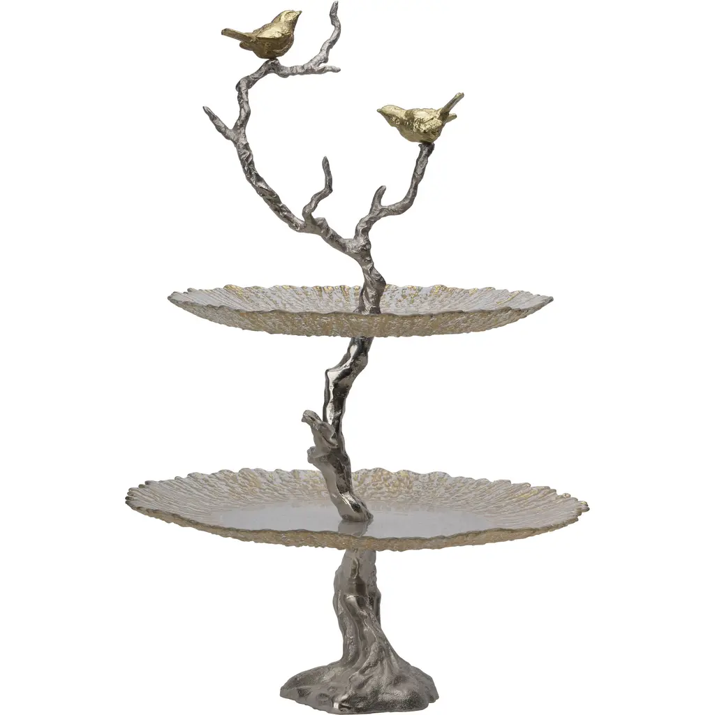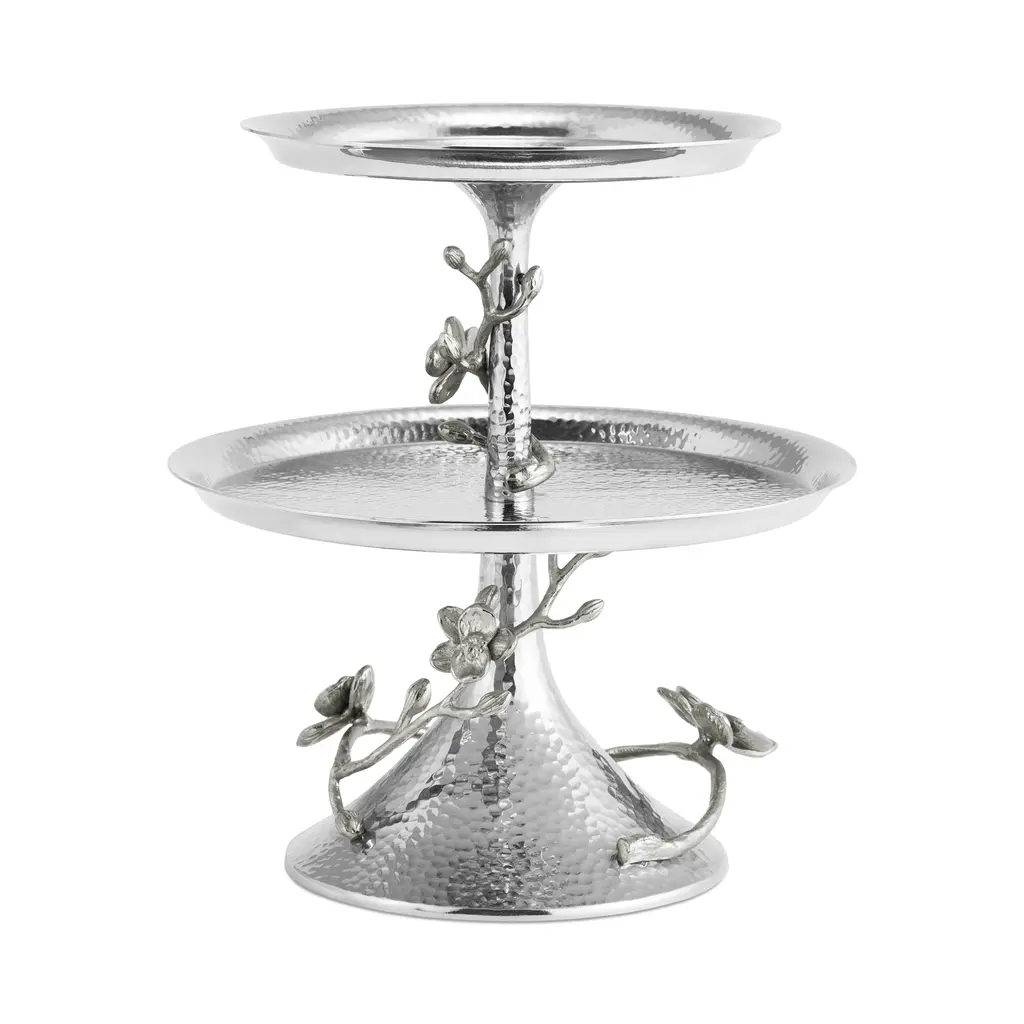 Leaf 3-Tier Serving Tray Hammered stainless steel 3-tier serving tray. Features a footed base and gold leaf accents. Size: 24". Upgrade your title to host of the year with quality serve ware, dishware, table decor, and more! It is perfectly ideal for any home kitchen, commercial kitchen, or occasion. Bring hotel luxury home.
