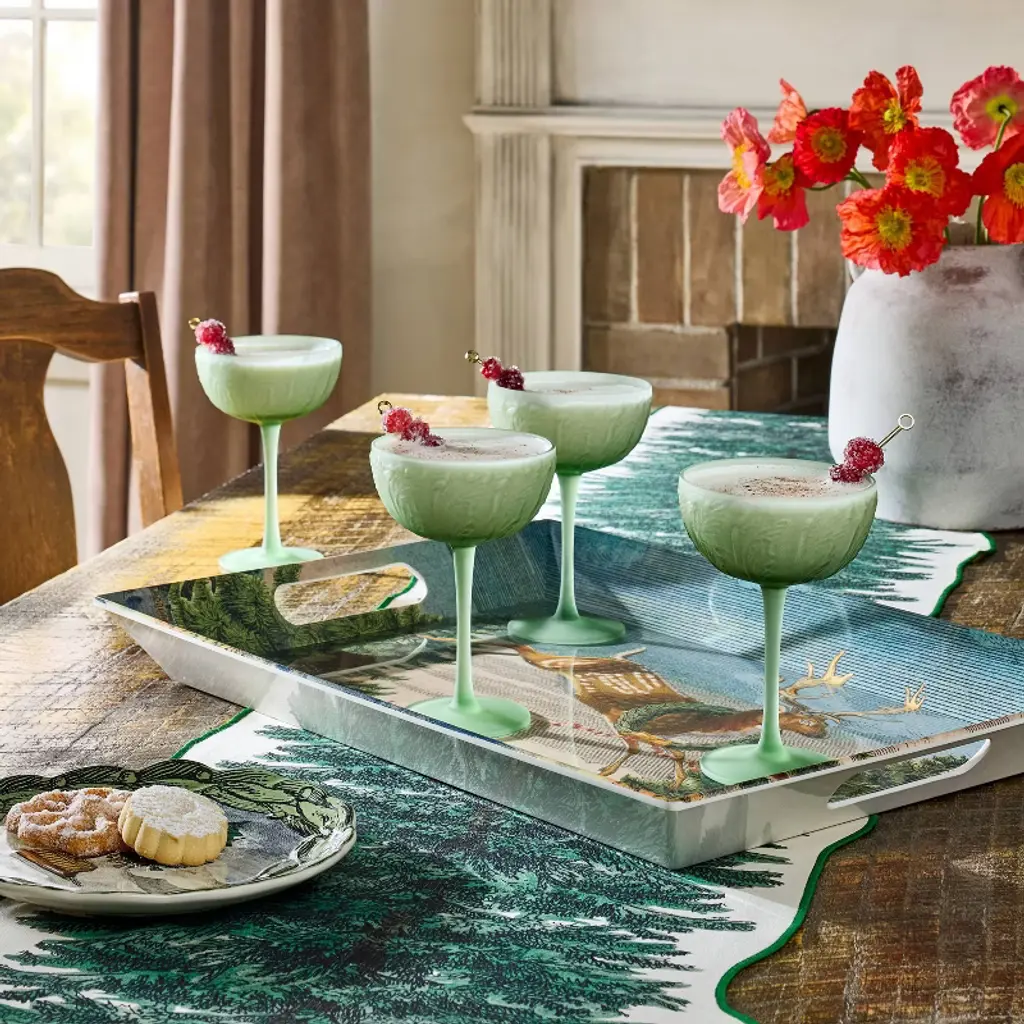 Add a festive touch to your serveware with this Melamine Tray from John Derian for Target. Made of melamine, this rectangular tray features artwork from decoupage artist John Derian showcasing prints of reindeer, trees, and a wintry town for seasonal charm. This BPA-free tray features cutout handles for easy portability, and the dishwasher-safe construction allows easy cleaning. John Derian is an American decoupage artist and designer living in New York City whose aesthetic encapsulates a curious mix of natural oddities, antiques and eccentricities.John Derian has been sharing his passion for beautiful, yet functional products as part of the Target family for over a decade. His one-of-a-kind, unique taste and sense of humor made him the perfect partner to bring joy to this year’s holiday celebrations.