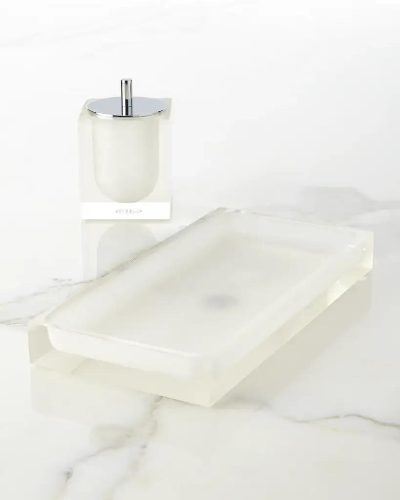 Handmade bath tray. Clear, thick acrylic with frosted interior. Dimensions are approximate. 11.25"L x 5.5"W x 1.25"T. Imported. About Jonathan Adler: Potter, designer, and author Jonathan Adler launched his namesake brand after leaving his day job to pursue his first love: pottery. Today his offerings span furniture, lighting, home décor, and more plus countless iconic interior projects—and over 25 stores—all dedicated to bringing Modern American Glamour to your life.