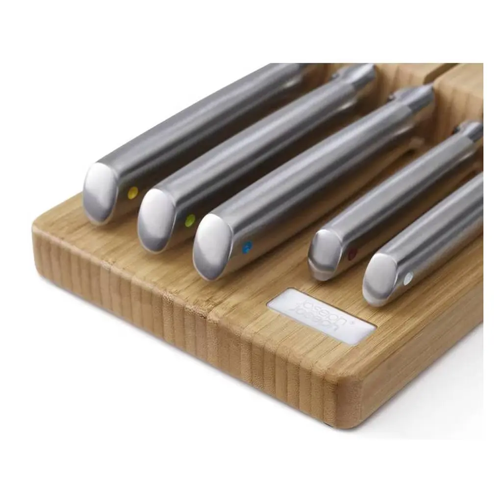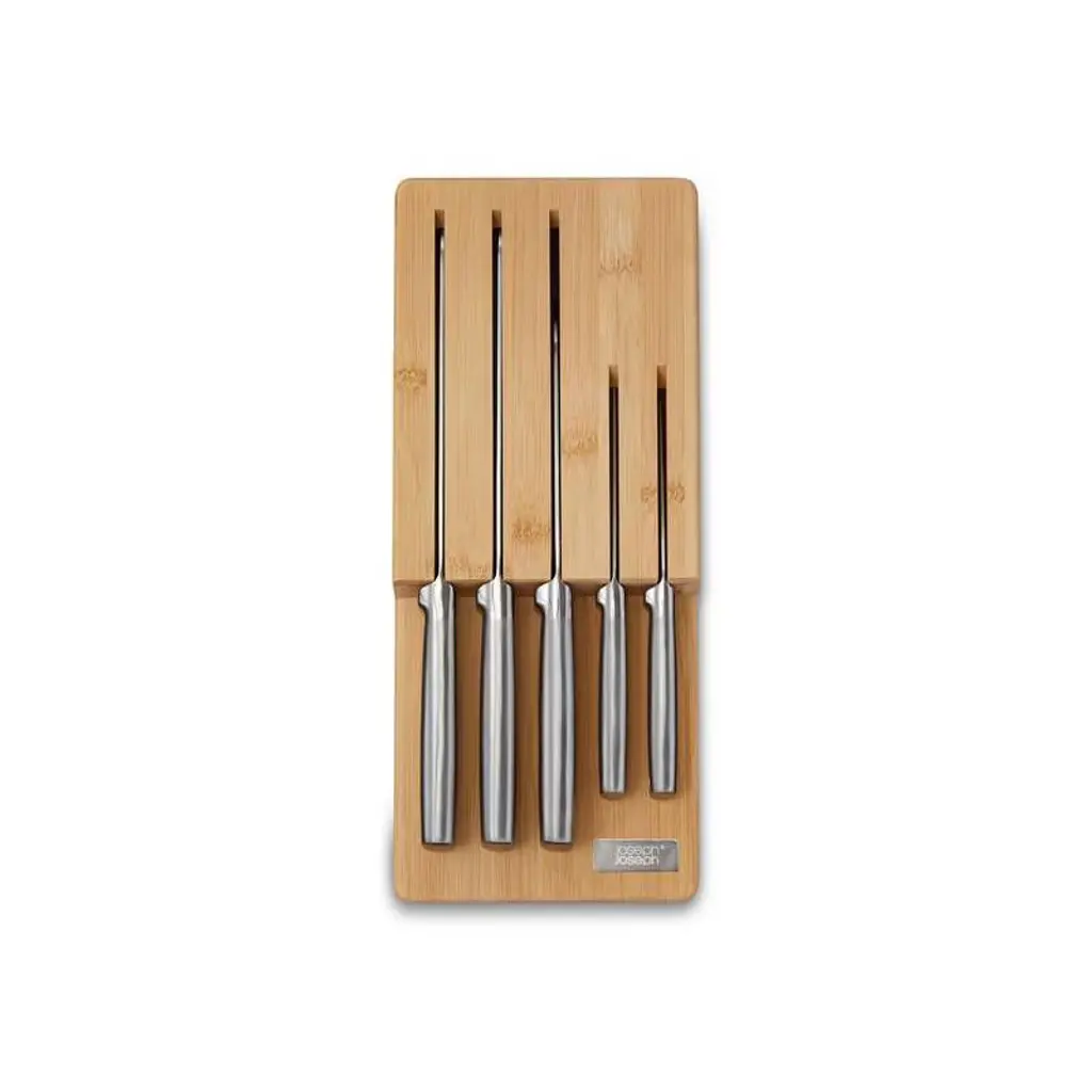 Joseph Joseph 5Pc Elevate Steel Block Knife Set With In-drawer Bamboo Storage Tray Natural Wood: Stainless Steel Cutlery
