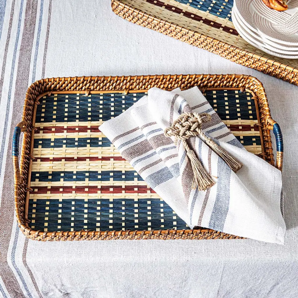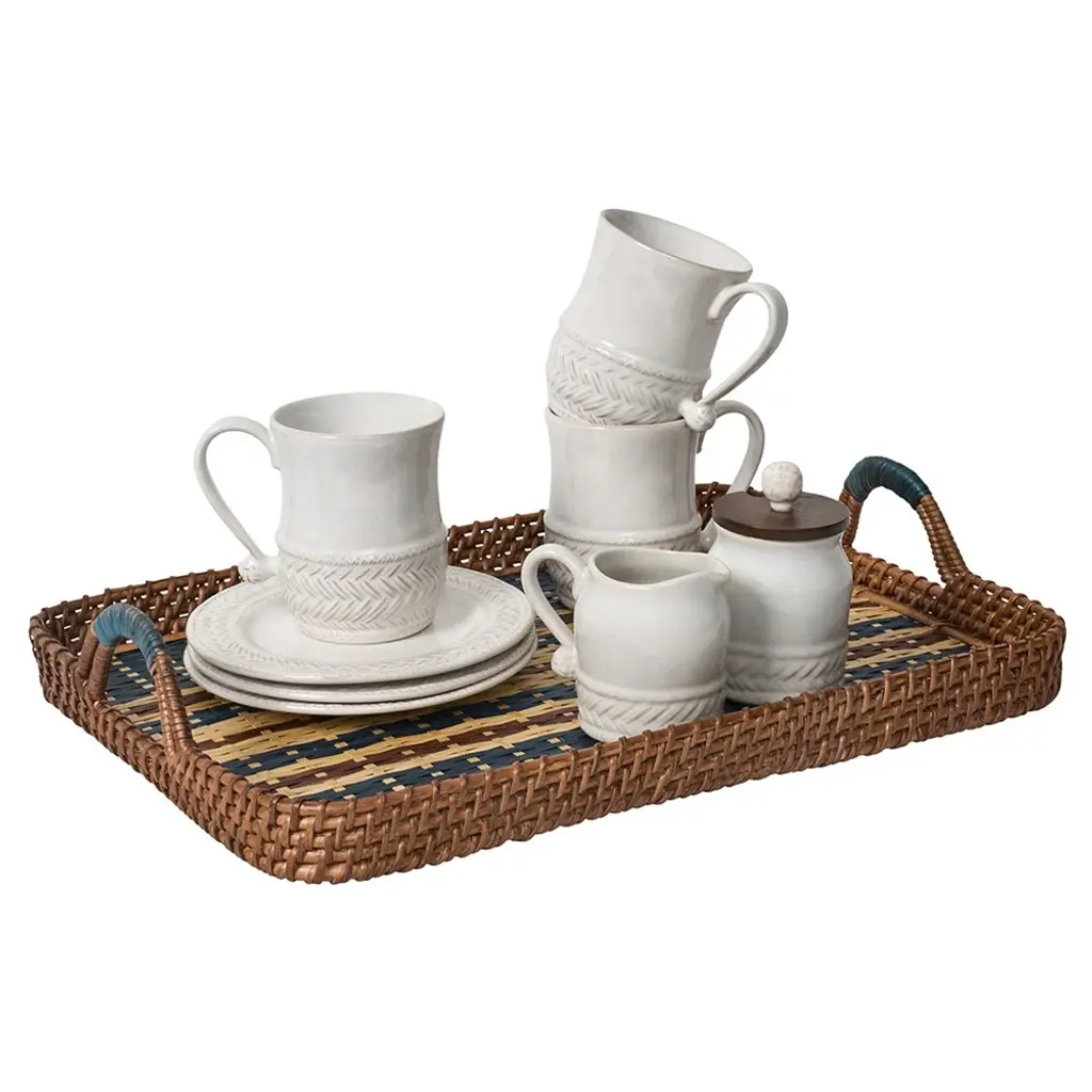 Juliska Danish Coastal Beach Navy Woven Wicker Rectangular Serving Tray - 18"