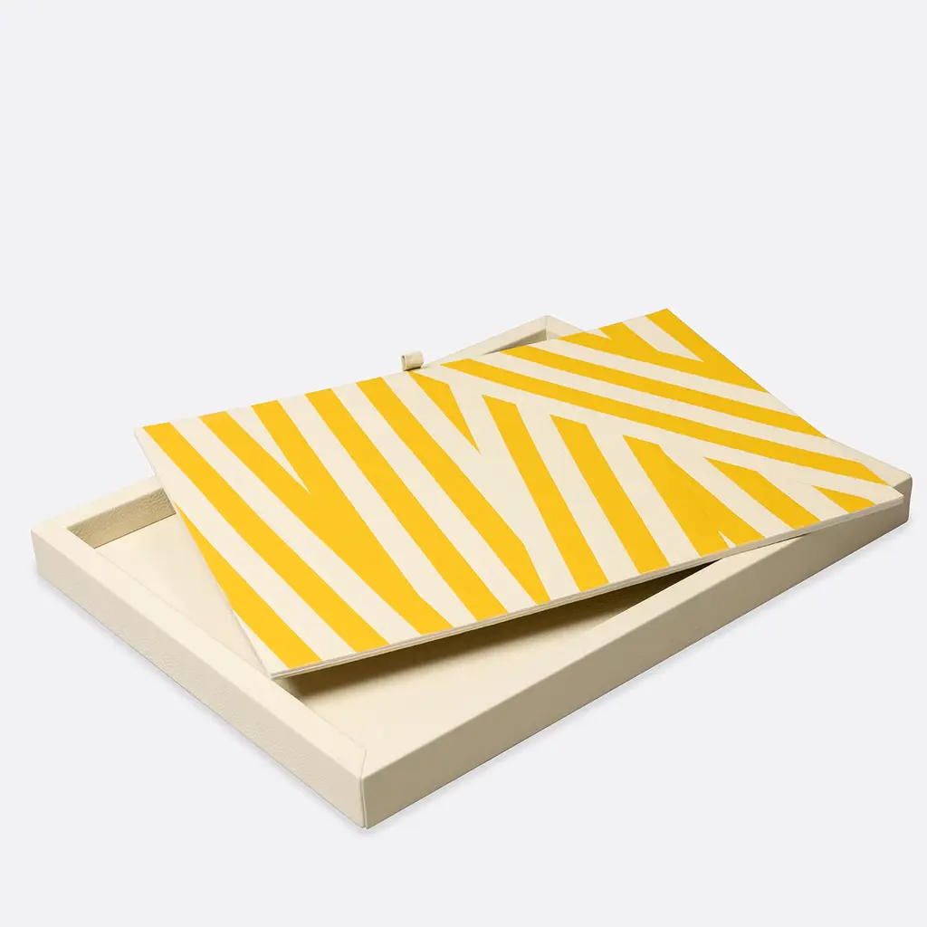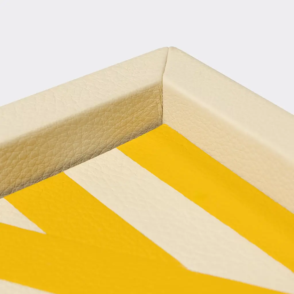 The Karamazov tray, crafted in exquisite Foglizzo leather, merges Italian artisan elegance with contemporary design. Its exclusive marquetry design, crafted by our design team, makes it a versatile centerpiece for serving or display. Available in different sizes. Please, ask the Concierge service for further information.
