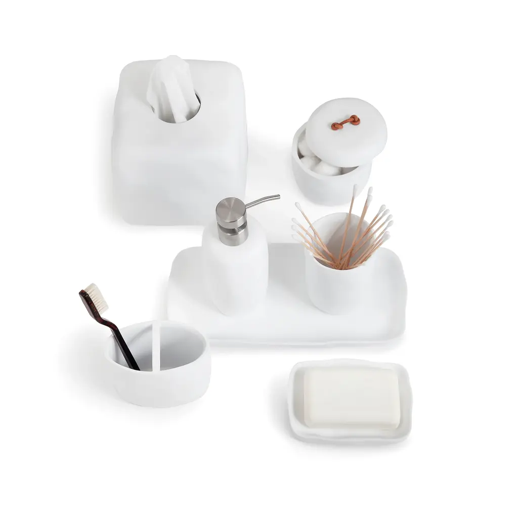 Crafted from resin and shaped to reminisce gentle clouds, our Ventura Bath Accessories will bring a calm and appealing atmosphere to any space. DimensionsThe digital images we display have the most accurate color possible. However, due to differences in computer monitors, we cannot be responsible for variations in color between the actual product and your screen.