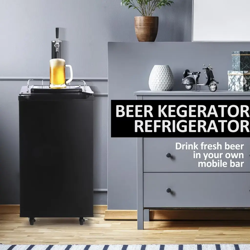 Kegerator And Keg Beer Cooler, Single Faucet Draft Beer Dispenser, Full Size Keg Refrigerator With Shelves, Stainless Steel, Drip Tray & Rail, Black