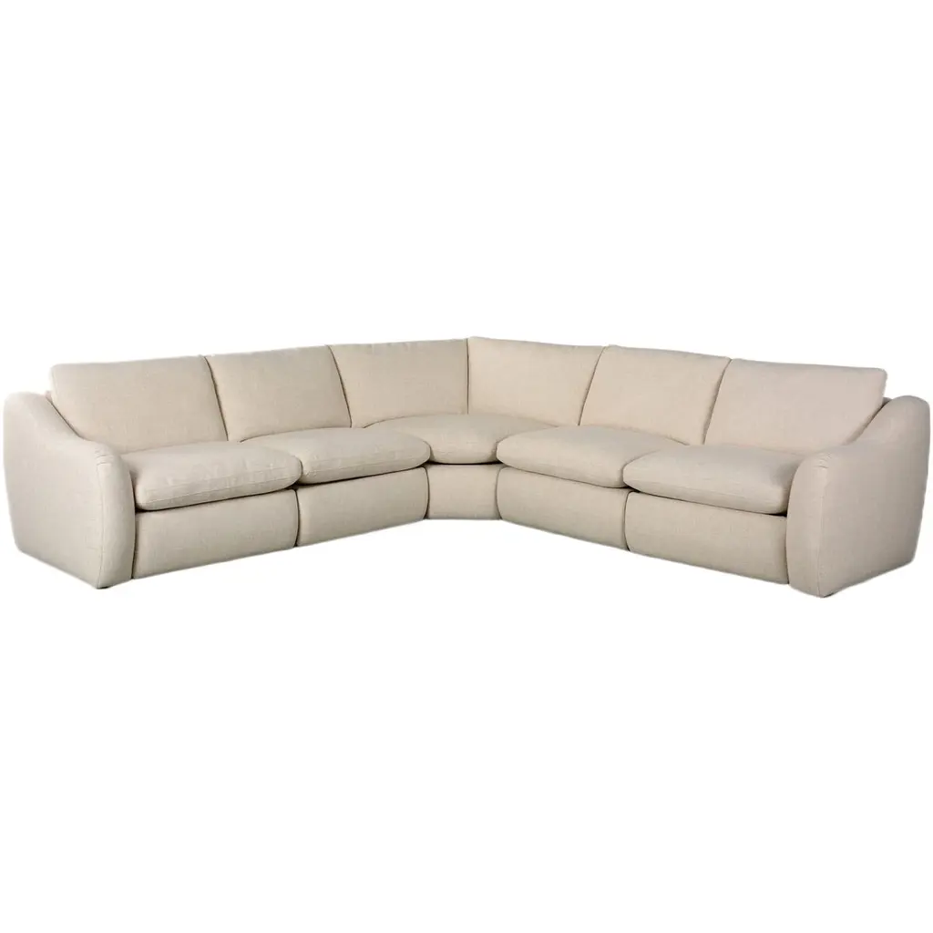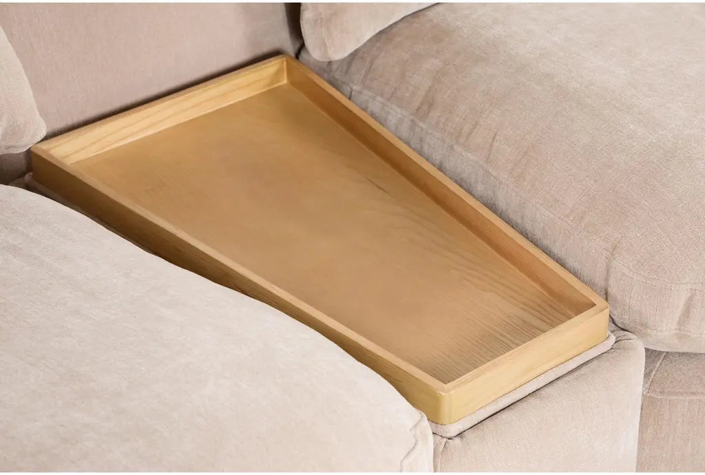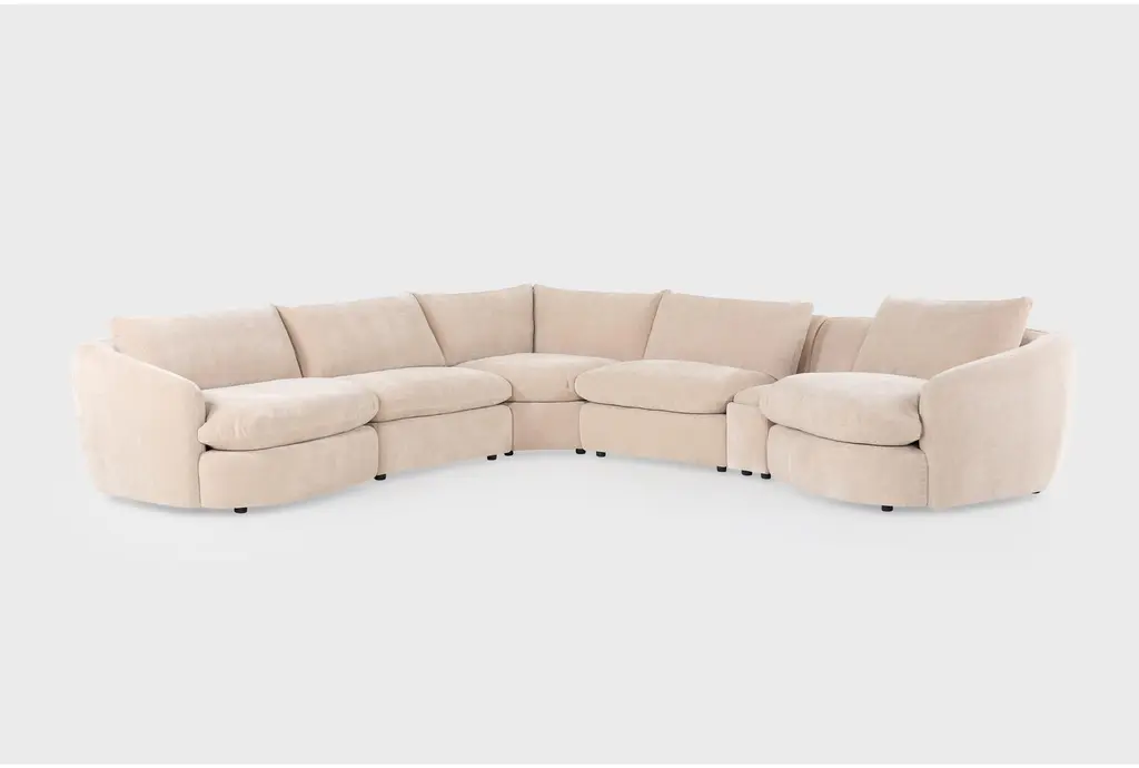 Kendall 159" Sand Beige Cloud-Like 6 Piece Curved L-Shaped Modular Sectional With Wood Tray Storage Console
