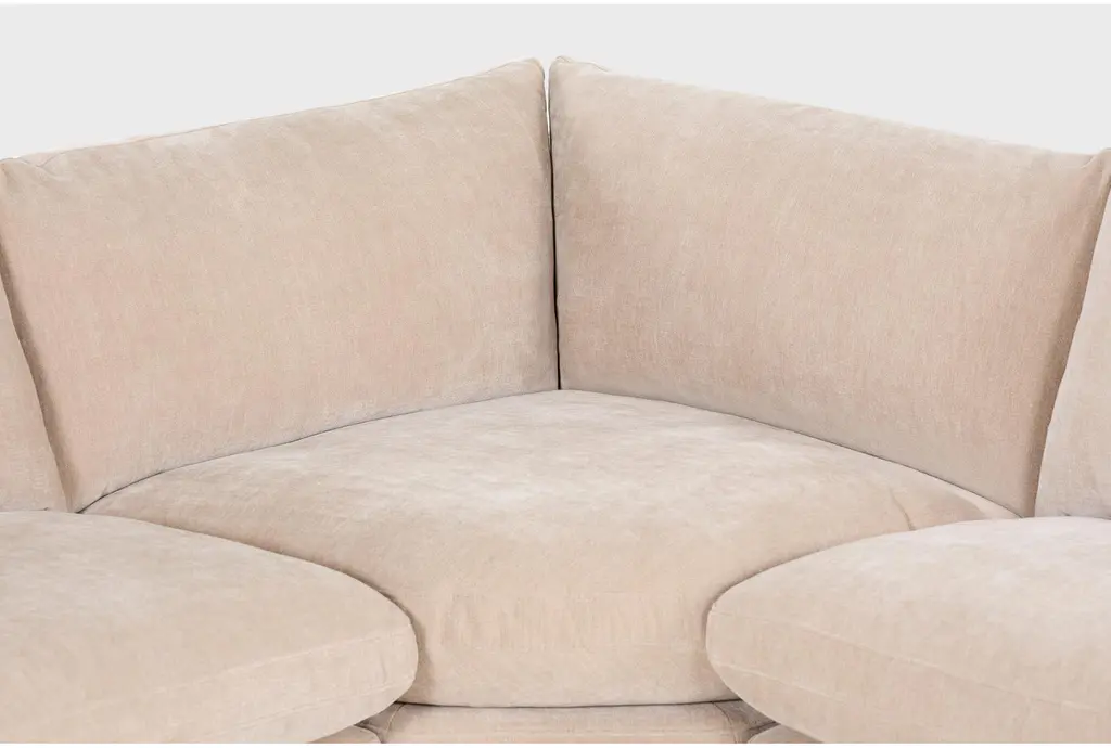 Introducing the Kendall 159" Sand Beige Cloud-Like 7 Piece Curved L-Shaped Modular Sectional, designed to transform your living room into a haven of comfort and style. This modern sectional features a reversible orientation and is upholstered in durable capri wicker fabric, ensuring both longevity and a soft, inviting feel. The dual wood tray storage console and swivel cuddler add extra functionality, making it perfect for family gatherings and relaxation.