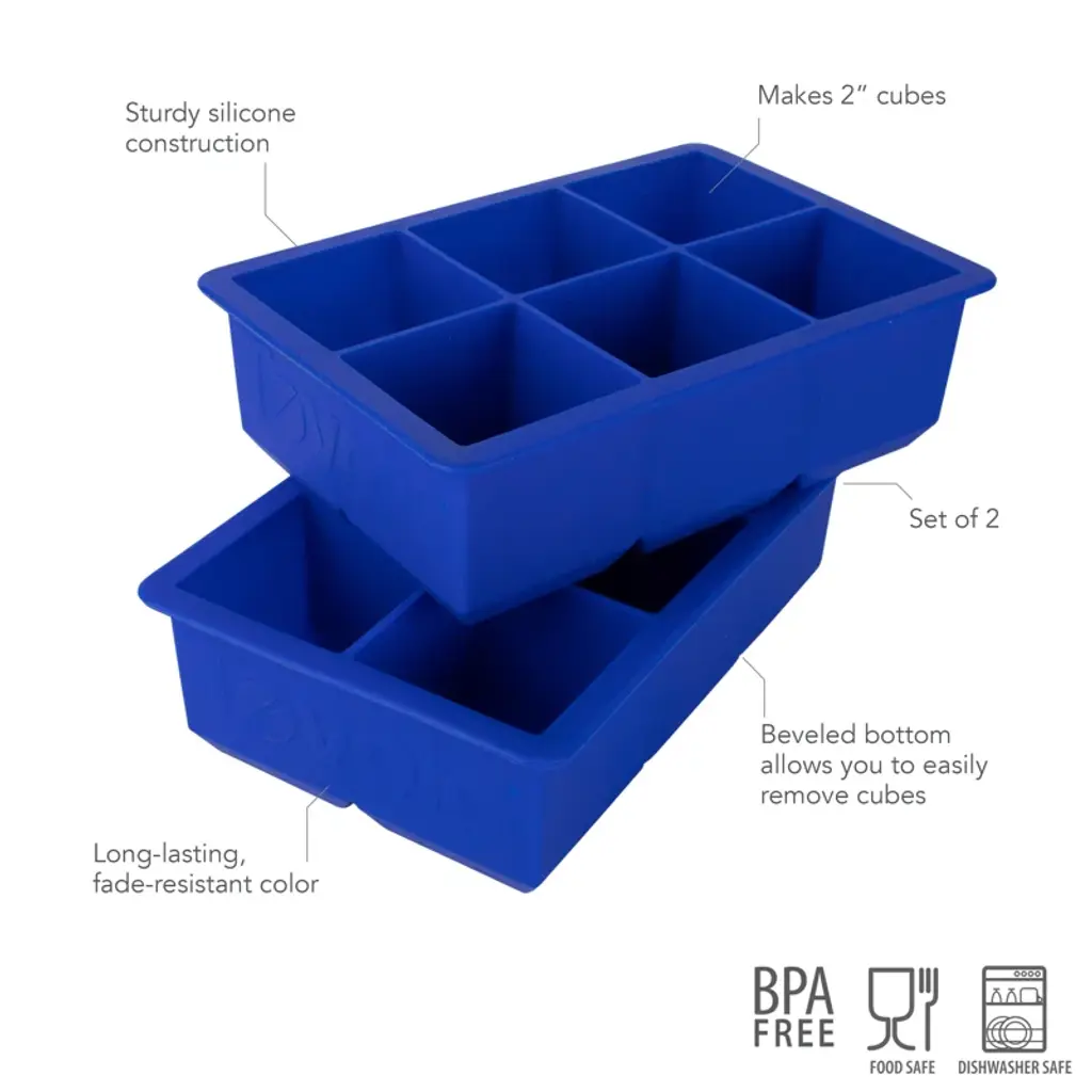 Nothing says wow in your beverage like the king cube! These durable trays can make more than ice - try freezing broth, juice, sauce, and more. With this set of ice molds, you'll be able to create fun ice cubes, which are great for keeping your after-dinner cocktail or daily drinking water cool. If you have a garden, you can use this ice tray to preserve herbs like basil or cilantro. Arriving in a set of two, you can be sure there is always ice in the freezer for your drinks. Made of BPA-free silicone, this ice cube tray is dishwasher-safe for easy cleaning.