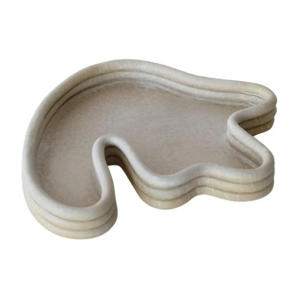Transform your home decor with the Kira Sandstone Tray, a stunning and uniquely crafted masterpiece that adds a chic, captivating touch to any space. Its organic oval shape, accentuated by a delicate scallop edge, introduces an artistic flair that effortlessly elevates your interior design. Enhance your living space with this one-of-a-kind tray that combines timeless beauty and contemporary sophistication.