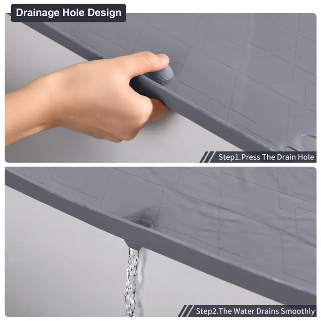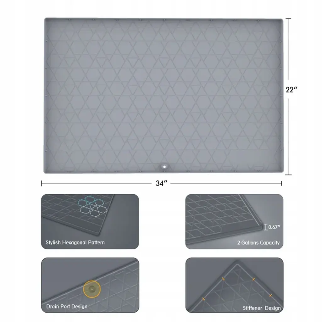 Kitchen And Bathroom Cabinet Liners, Under Sink Tray Racks Protective Silicone Waterproof Mats - 34''x22'' - Grey-A