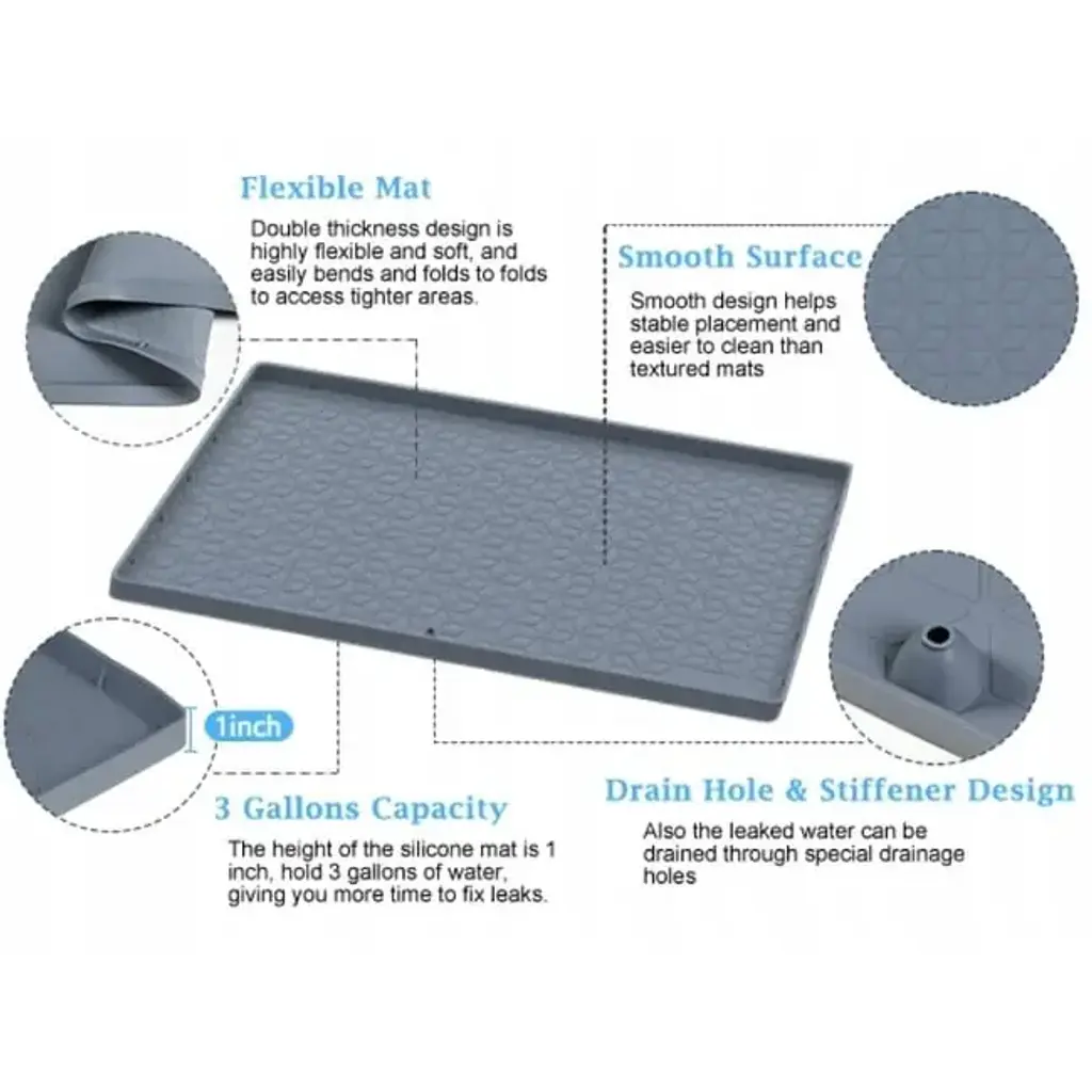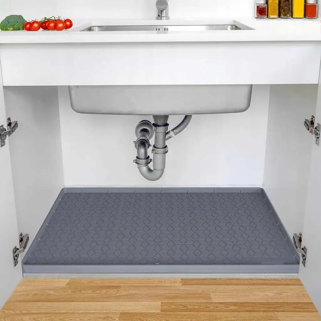 Kitchen And Bathroom Cabinet Liners, Under Sink Tray Racks Protective Silicone Waterproof Mats - 34''x22'' - Grey