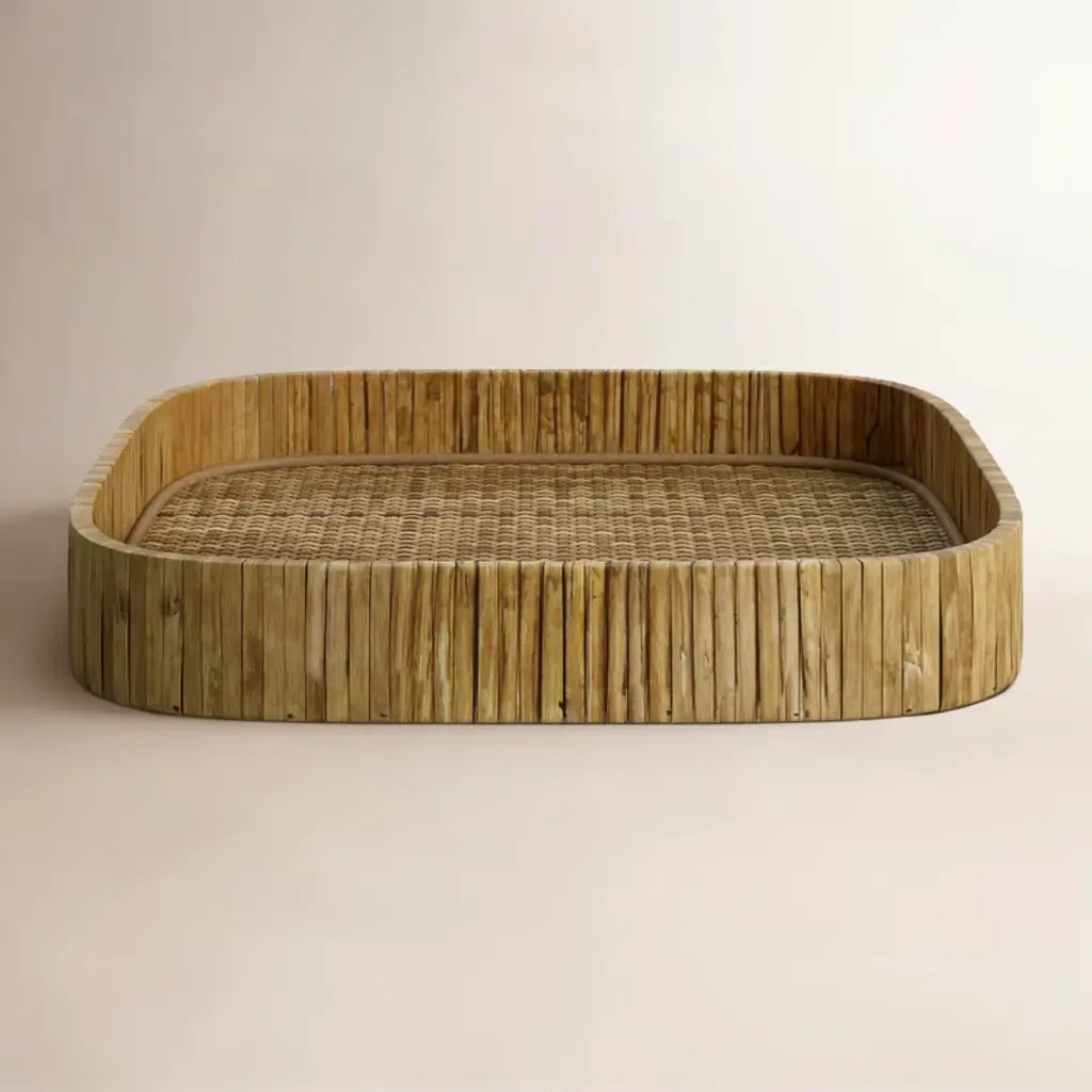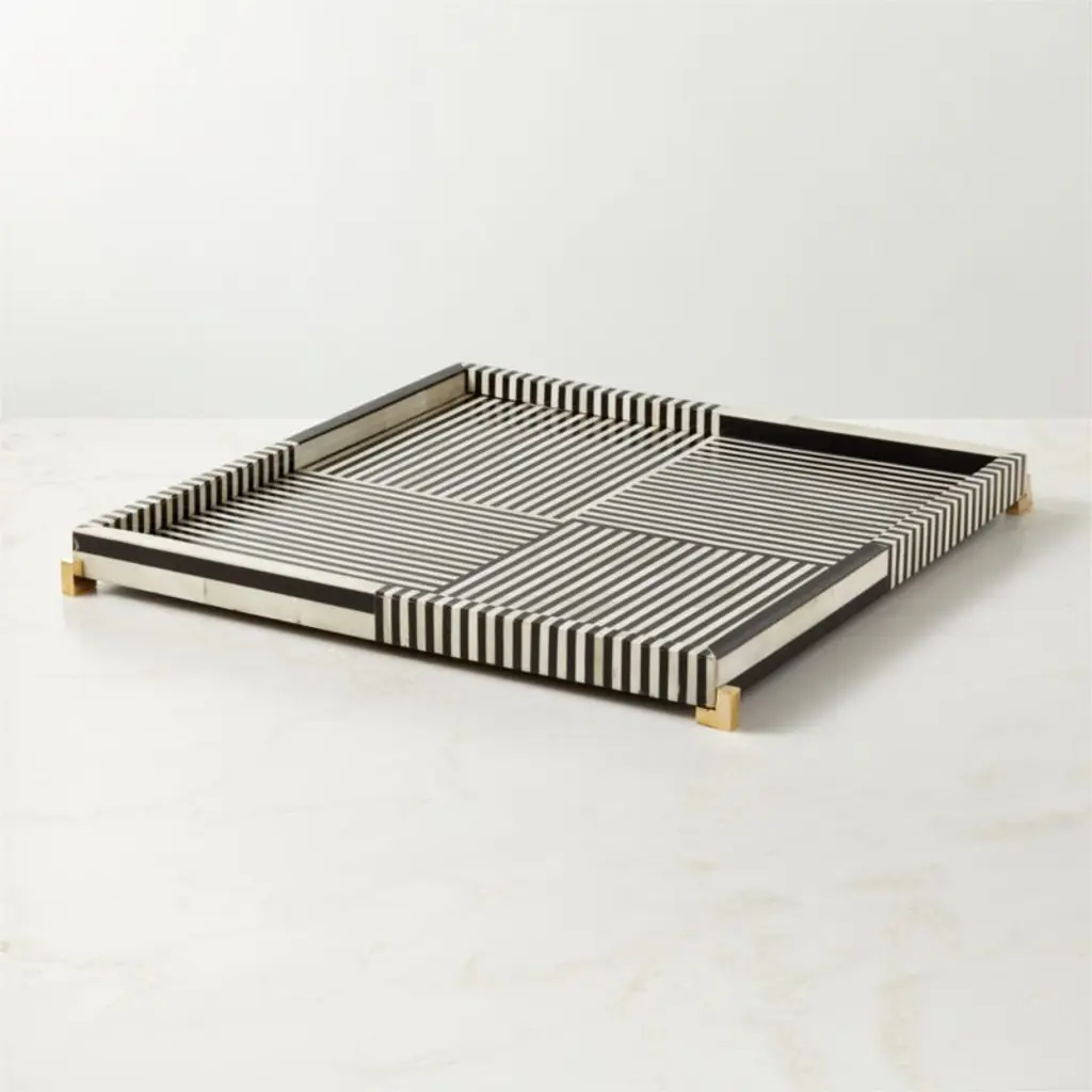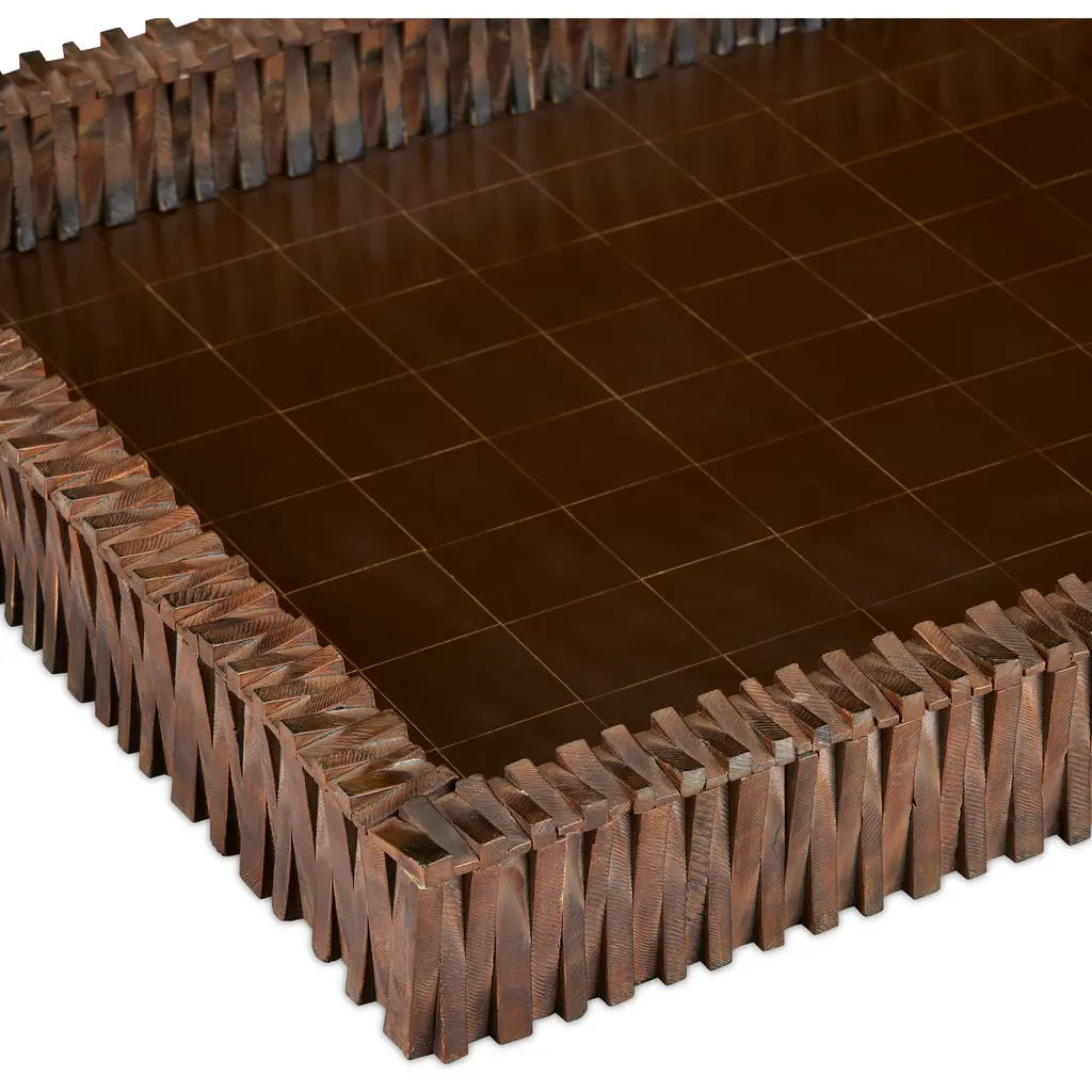 The Koa Tray is an artisanal piece made from burnt horn and composite finished to resemble faux coco shell. The sections of these materials are hand-applied, which is a painstaking process for an artisan to accomplish given the seamlessness of the surfacing.