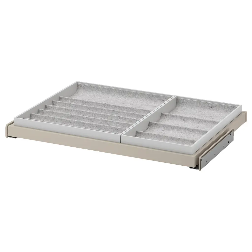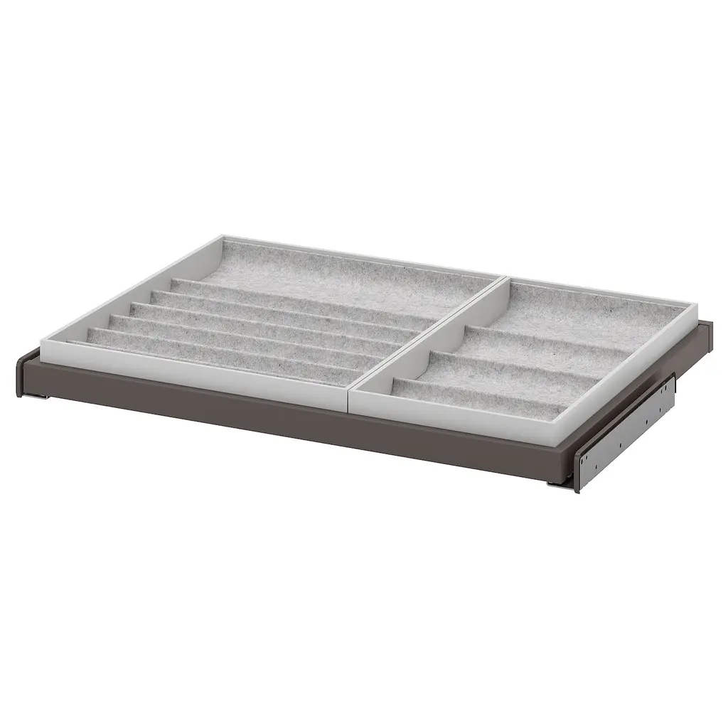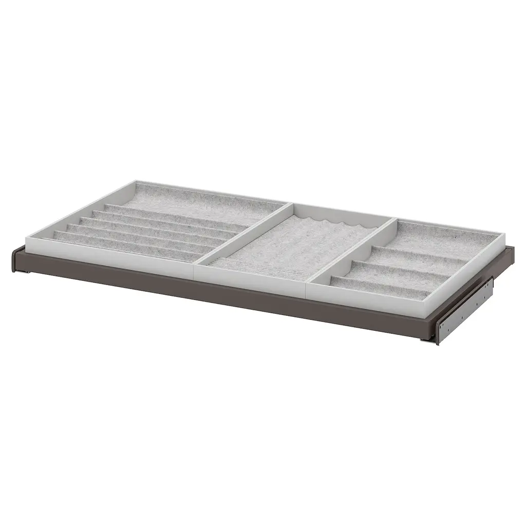 KOMPLEMENT Pull-out tray with insert - dark gray/light gray 29 1/2x22 7/8 ". The insert helps you store and organize your sunglasses, watches and other accessories. Soft felt protects your accessories and keeps them neatly in place. You can easily see and reach your things since the tray pulls out.