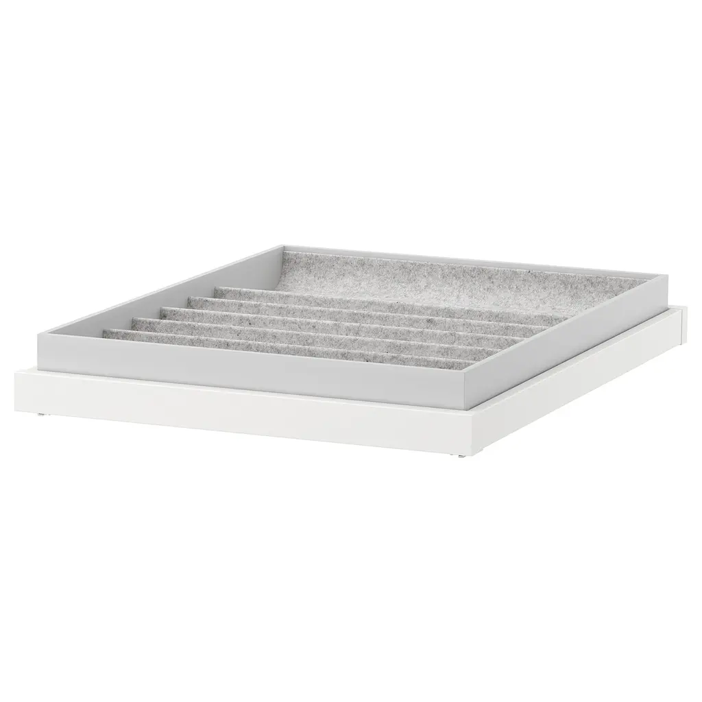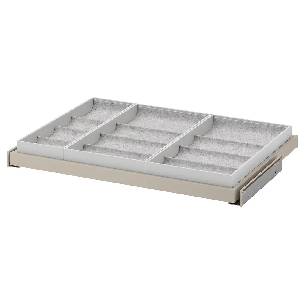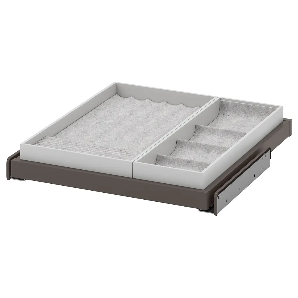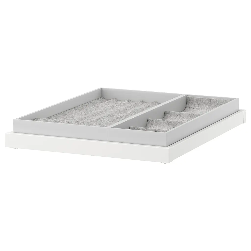 KOMPLEMENT Pull-out tray with insert - dark gray/light gray 29 1/2x22 7/8 ". The insert helps you store and organize your sunglasses, watches and other accessories. Soft felt protects your accessories and keeps them neatly in place. You can easily see and reach your things since the tray pulls out.
