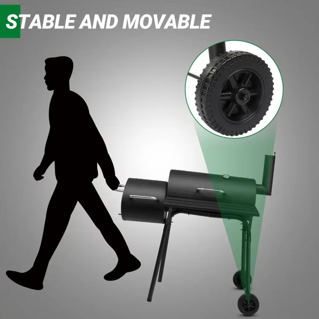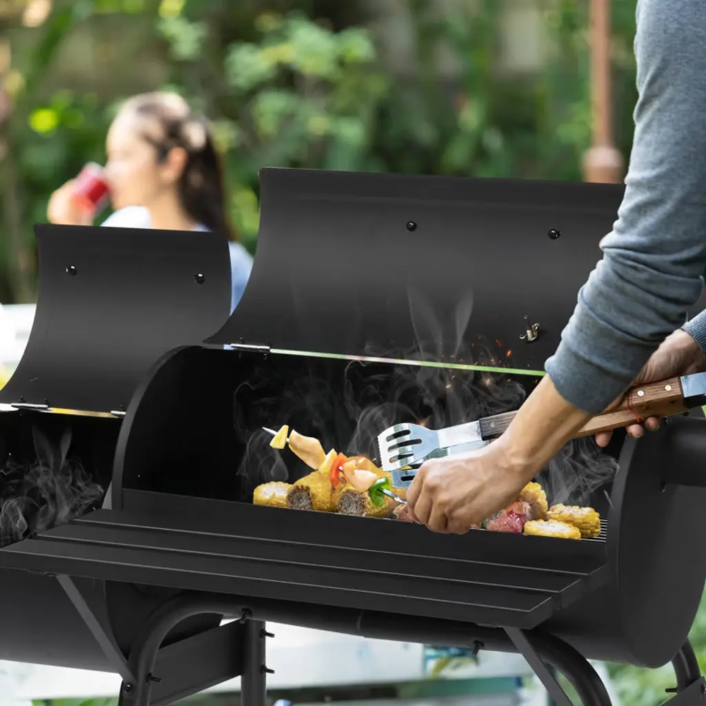 Transform your outdoor cooking experience with our Barrel Charcoal Grill with Offset Smoker. Designed for grilling enthusiasts, this all-metal smoker offers exceptional durability and versatility, making it perfect for garden, patio, and backyard gatherings. Featuring a large cooking area, a handy side table, and easy mobility, this grill is ideal for entertaining and creating perfectly smoked and grilled dishes. Elevate your culinary skills and impress your guests with this superior outdoor cooking solution.