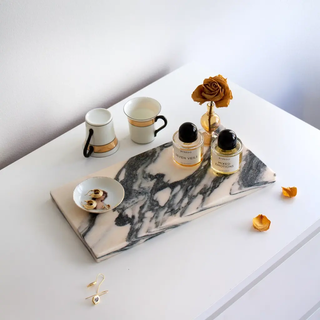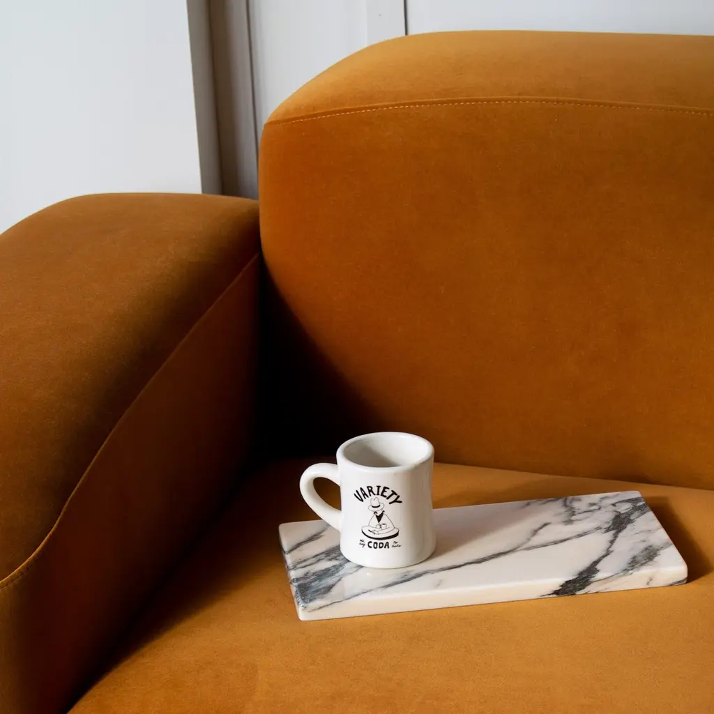 This stone inspires thoughts of a mid-afternoon espresso amongst vineyards in the italian countryside. feet up on a vintage iron railing, warm rays bathing everything in sight + a breeze rustling the vines below. a beautiful creamy background, swirls of tan + webs of black composed in tandem. Made from Portuguese marble.