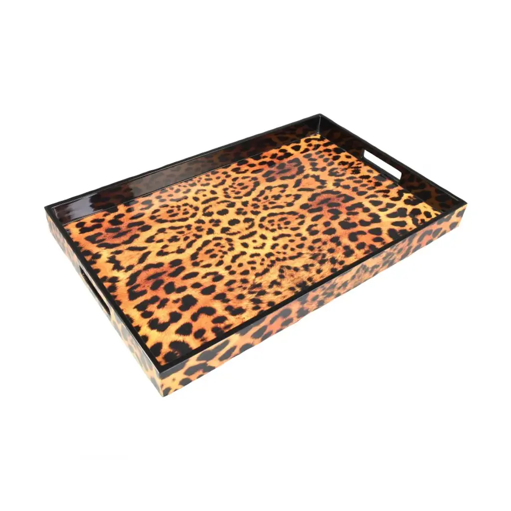 Lacquer Leopard Vanity Tray 8" X 12" X 1.5"h