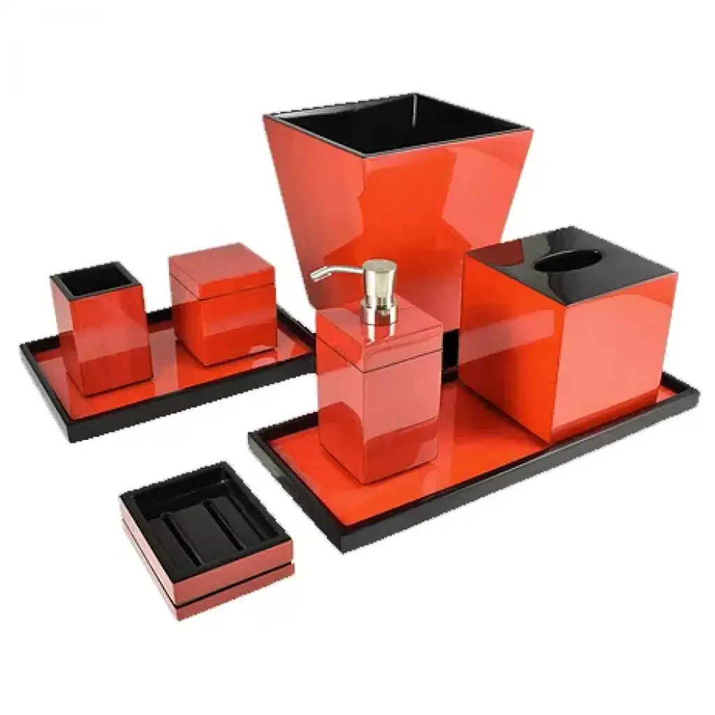 These handcrafted lacquered wood products are produced by hand pouring several layers of lacquer onto wood frames, individual hand polishing each layer, and finishing with a deep, rich finish. Each item requires eleven steps and a minimum of fourteen days to be completed.