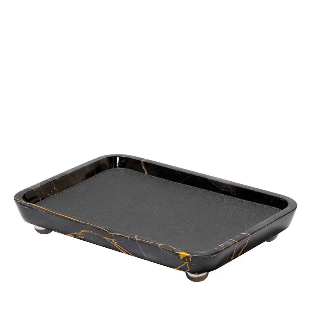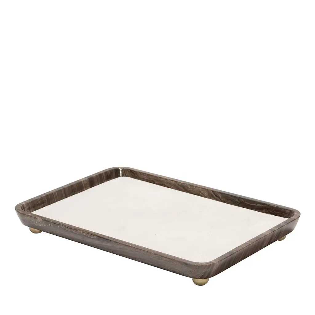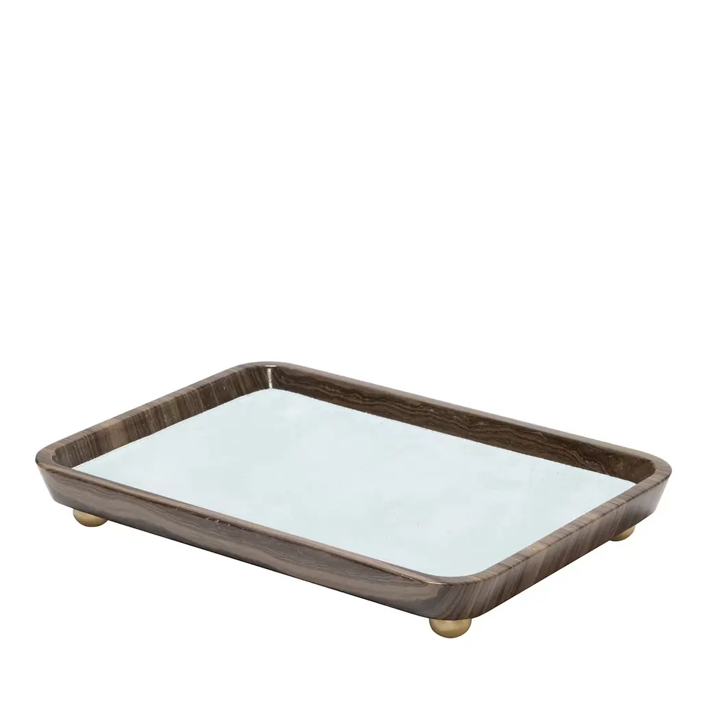 Lacquer Walnut Burl/black Vanity Tray 8" X 12" X 1.5"h