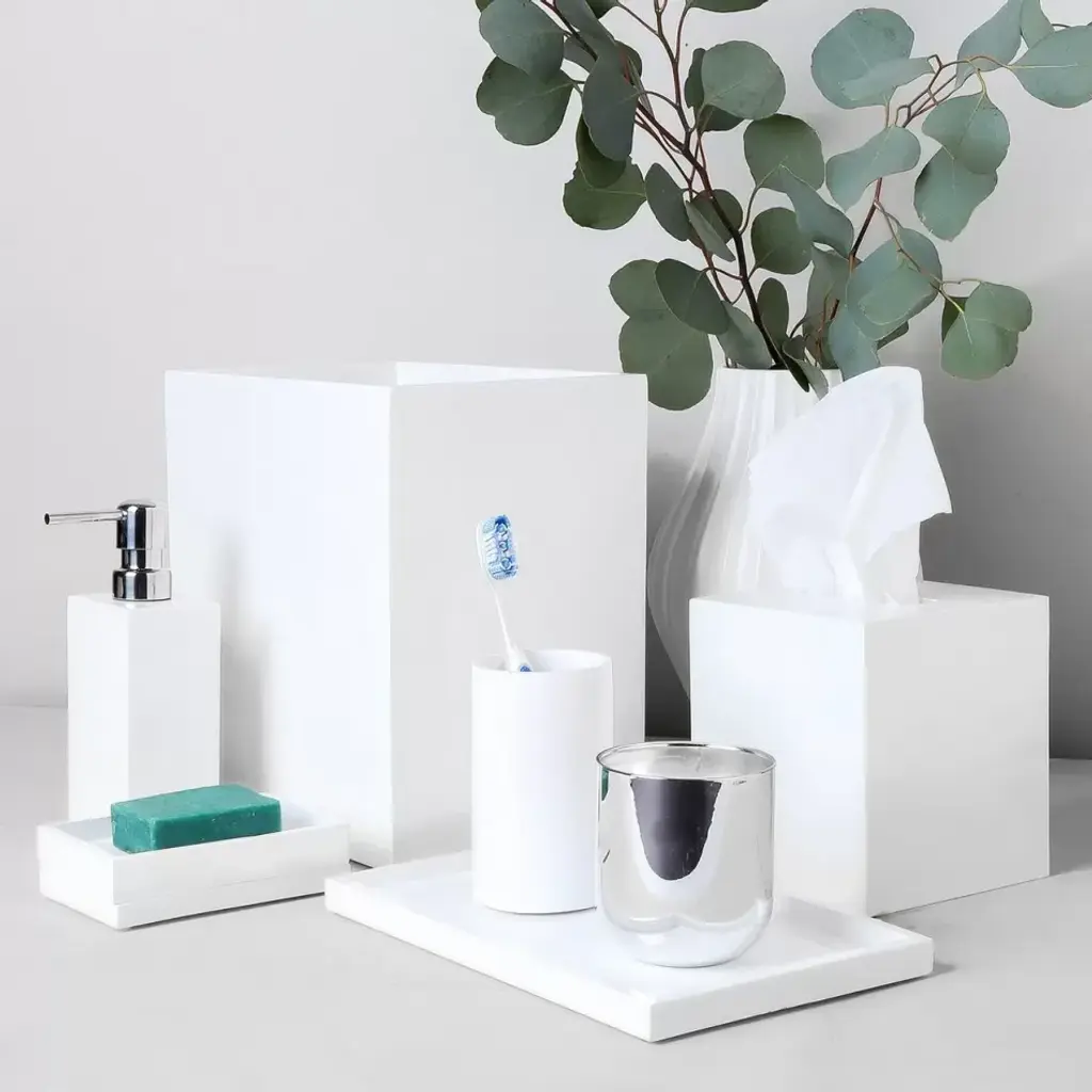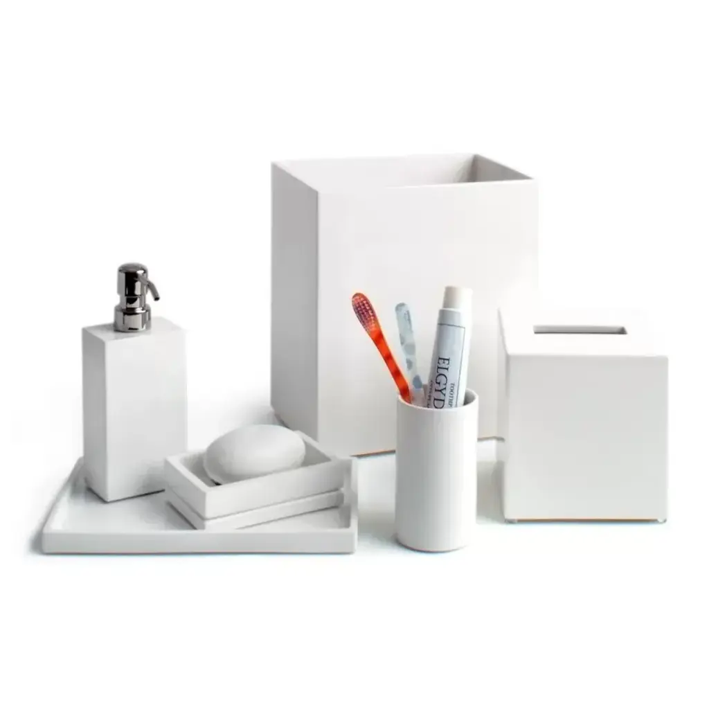 Go from blah to spa with our line of hand-poured lacquer bath accessories. Each piece is finished with a high gloss clear coat to help make it easy to clean and protect it from scratches.