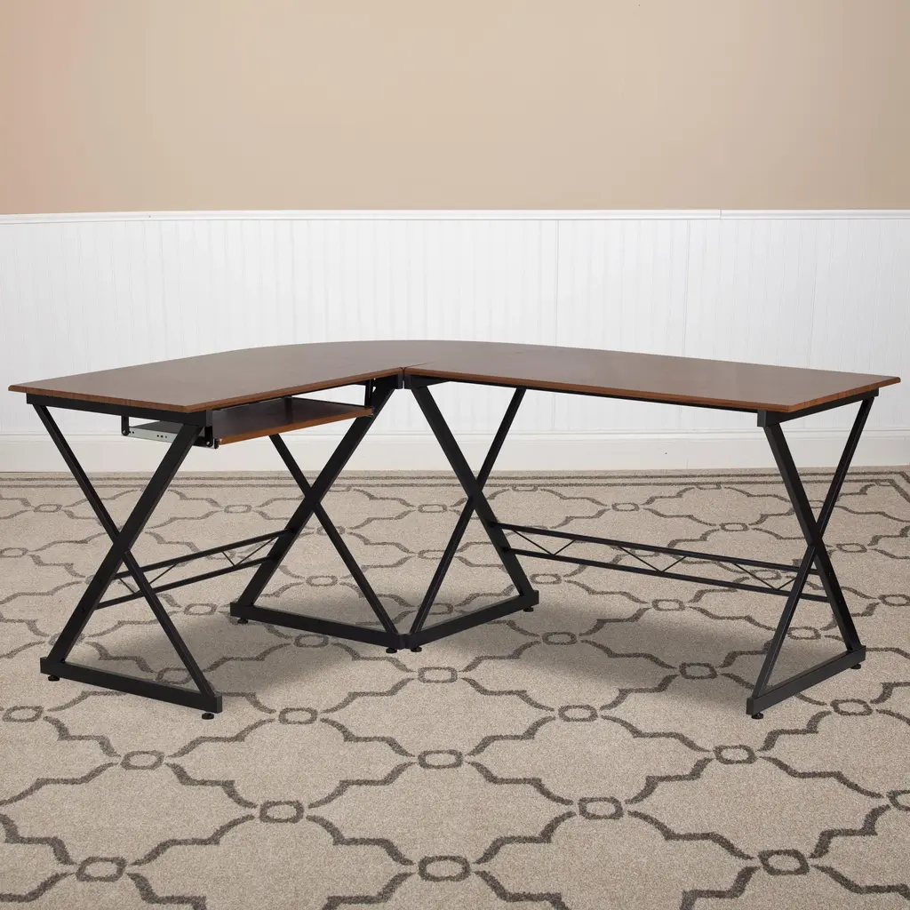 Laminate L-Shape Computer Desk With Pull-Out Keyboard Tray
