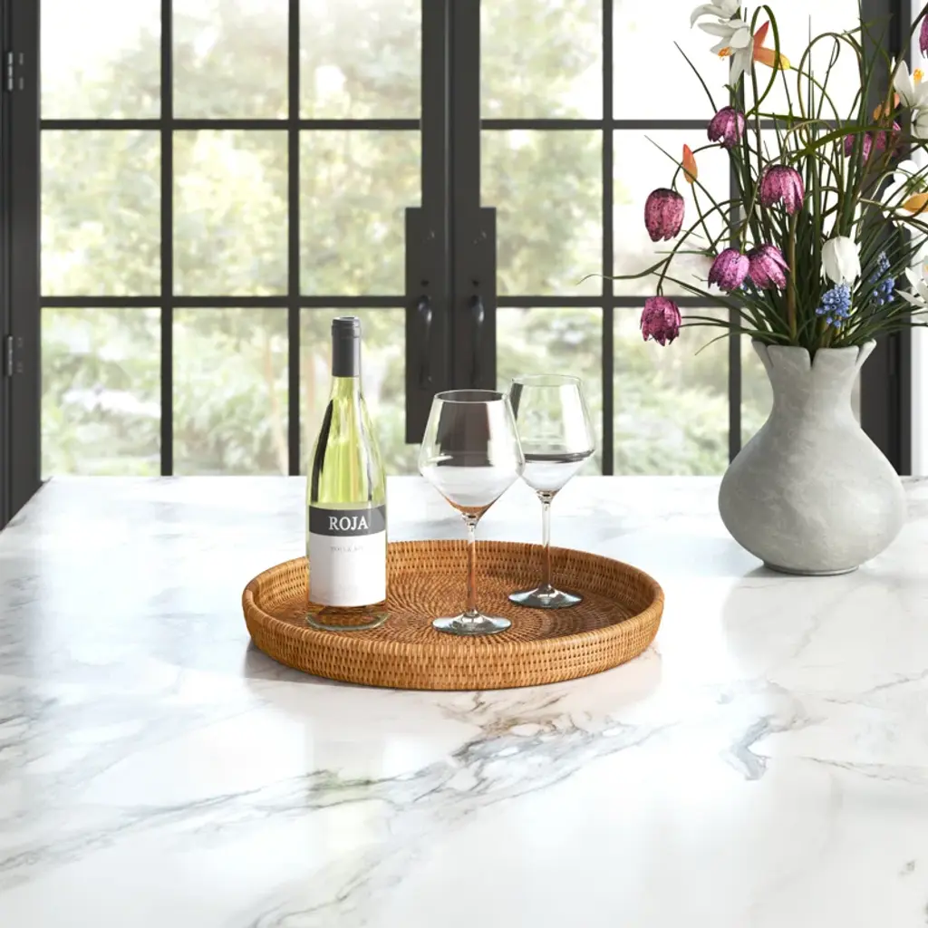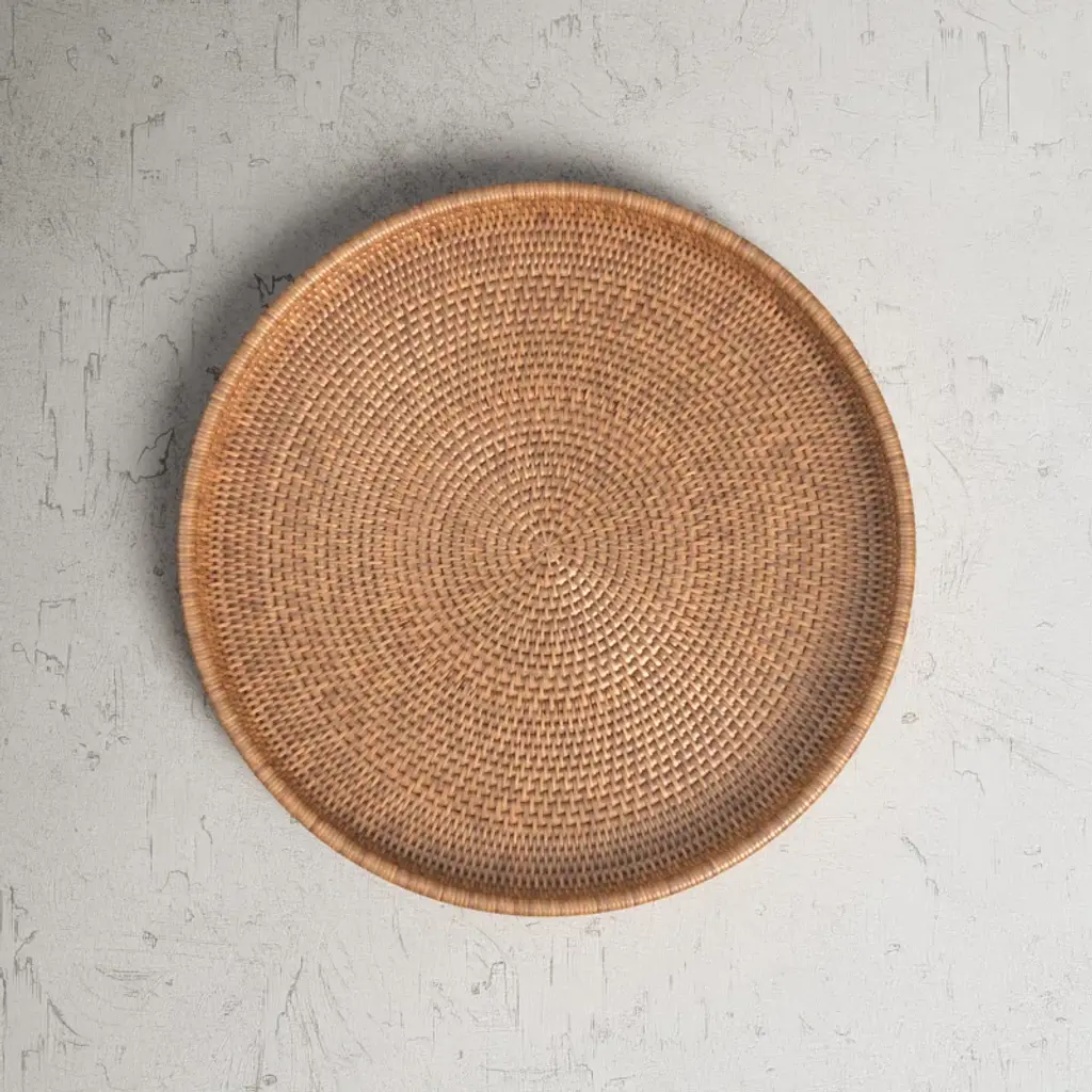 Handwoven trays and baskets provide the perfect accent to any room in the house with a tight weave, durable construction, with exquisite and impeccable quality. Products are handmade and each piece is unique therefore slight variations and imperfections exist. This manufacturer manufactures a great line of rattan items for your table and home. Wipe clean with a damp cloth.
