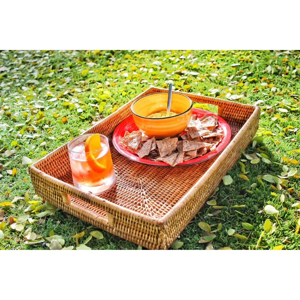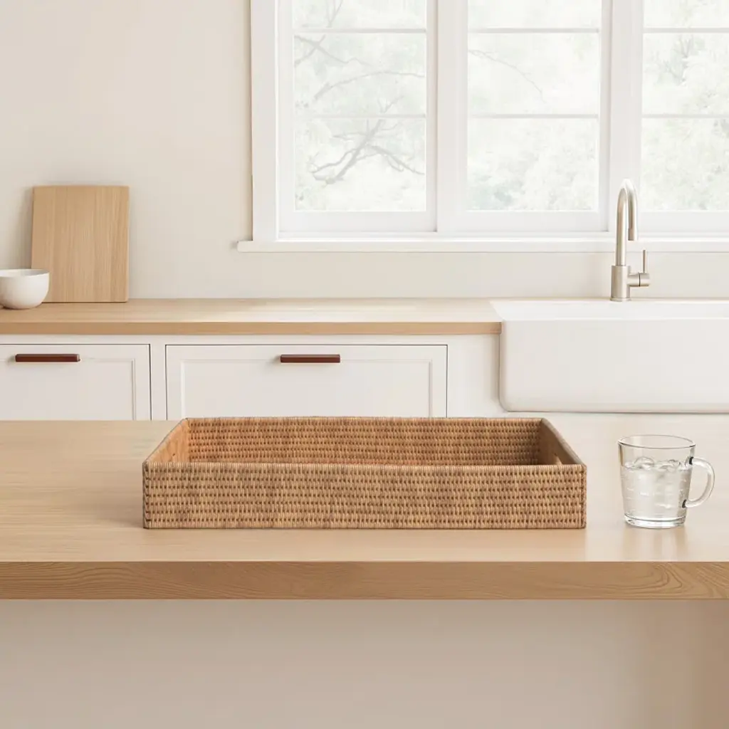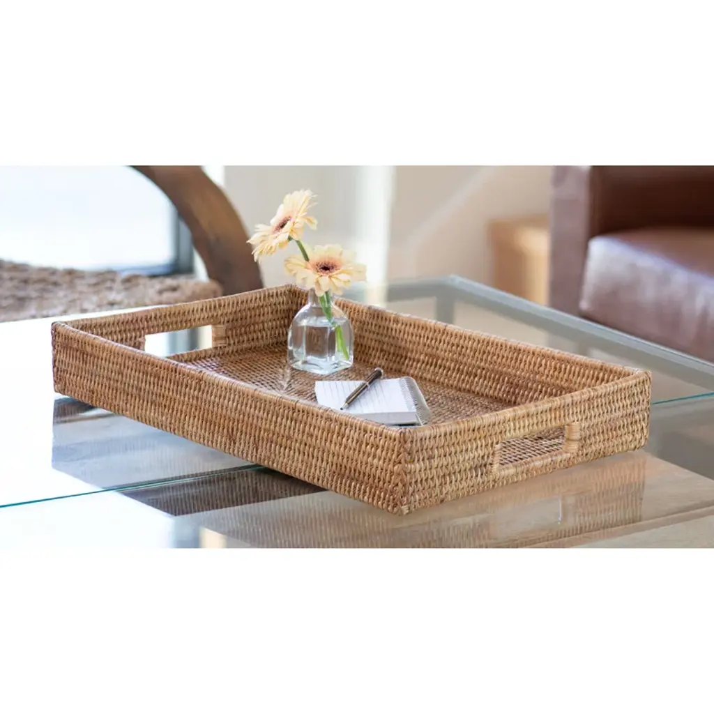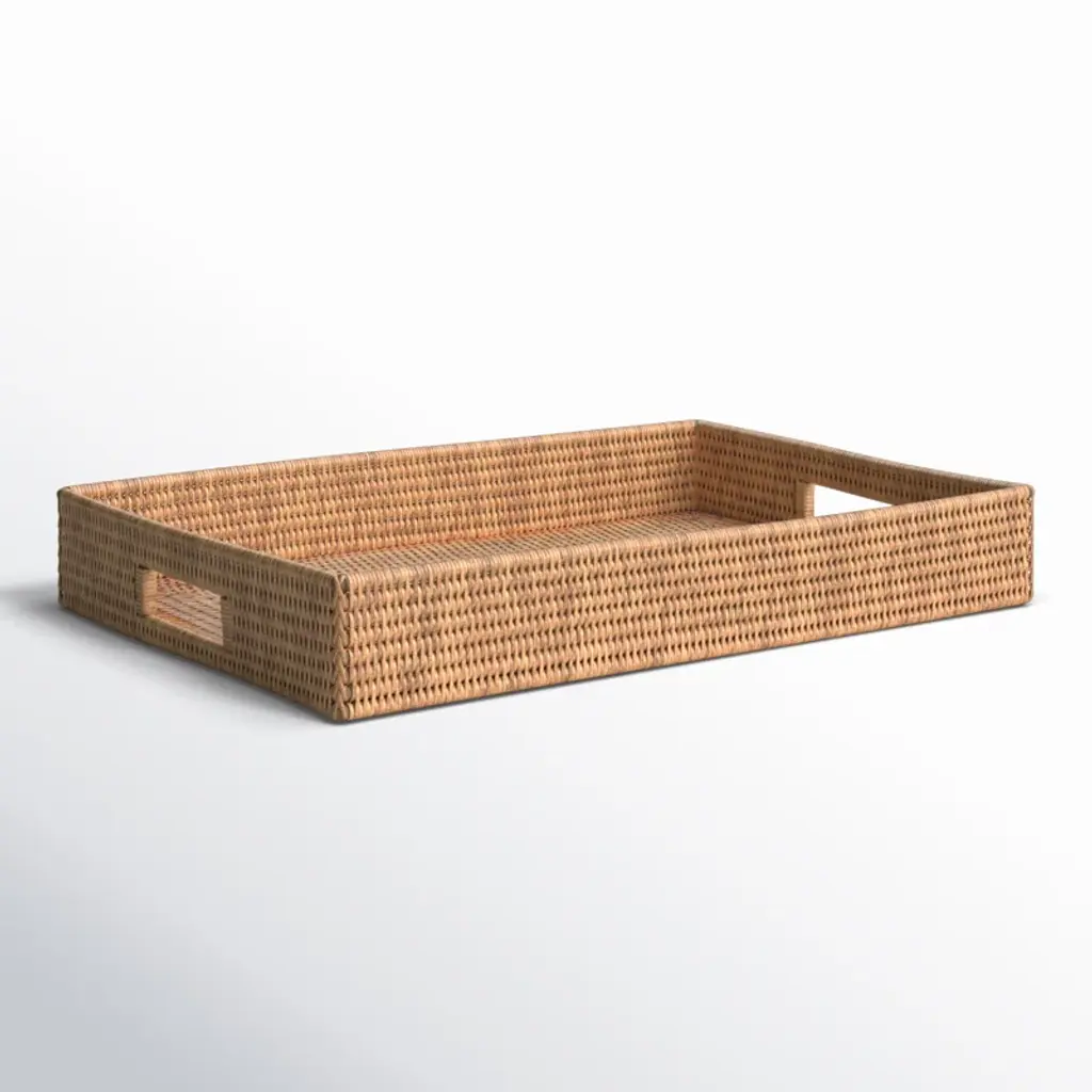 This decorative wicker tray is one sure way to organize keys in the entryway or tidy up remotes on your living room coffee table. Its rectangular design is intricately woven with natural rattan that comes in the color of your choice, making it right at home in any aesthetic or color palette. Best of all, it's designed with cutout handles that make it easy to carry throughout your home.