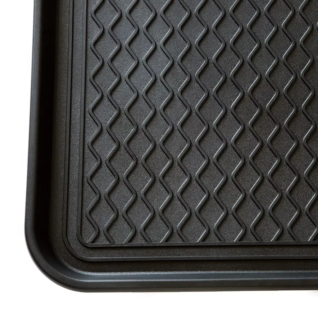 Large All-weather Indoor/outdoor Boot Tray - Weather-resistant Plastic Shoe Mat With Raised Edge For Entryways, Decks, And Patios By Stalwart (Black)