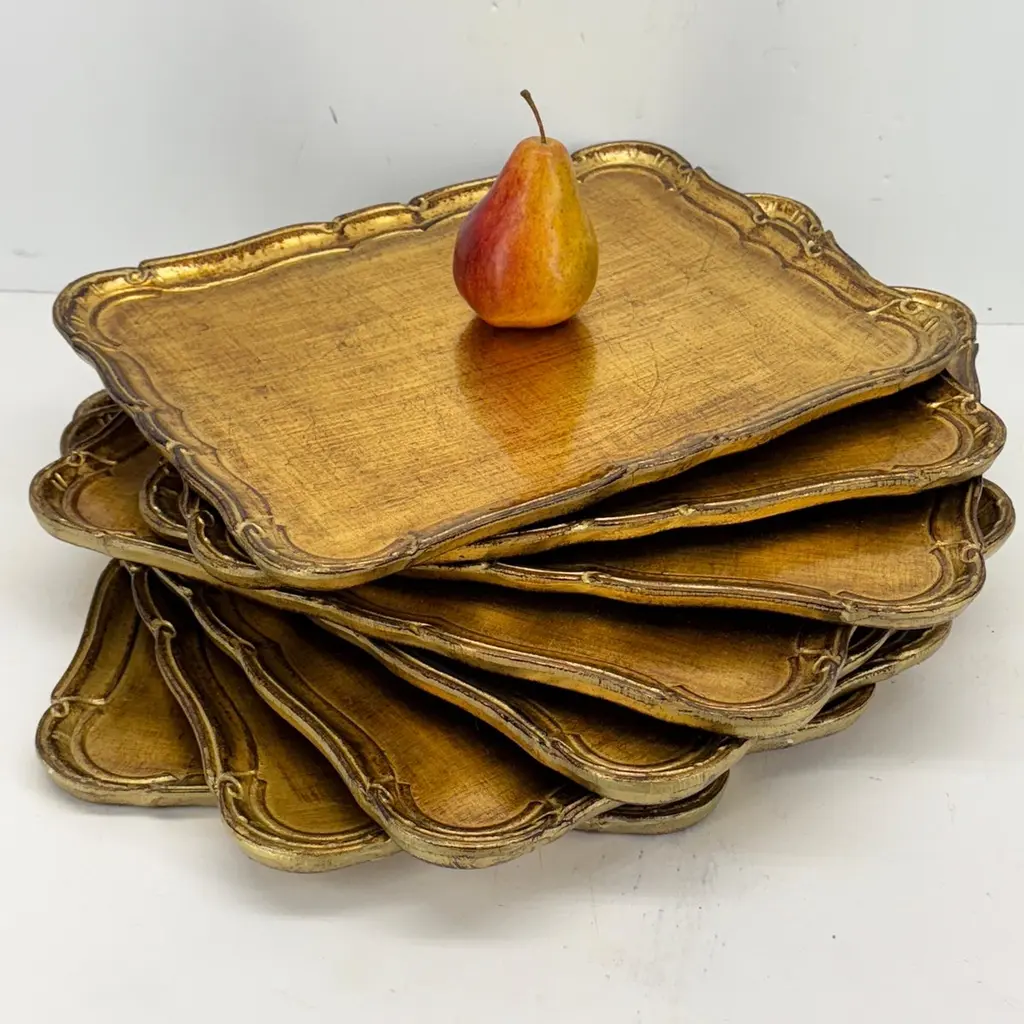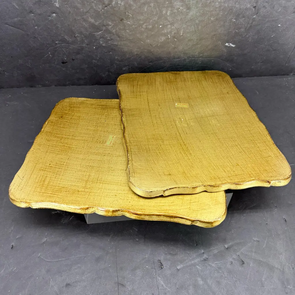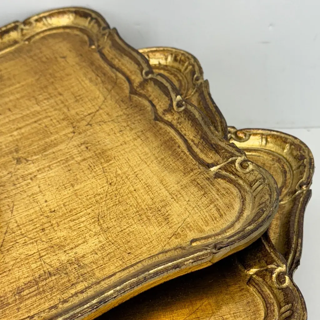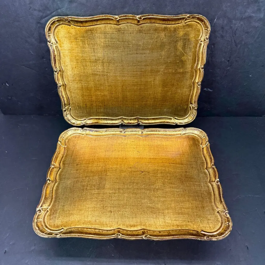 Stunning large wood Florentine trays from Italy. These highly collectable pieces are both form and function. These look wonderful sitting alone or in groupings on a coffee table. Functionally they can be used on a Mid-Century bar cart, vanity table or desk. These pieces make a wonderful addition to any formal as well as informal home. Please note they are sold separately.