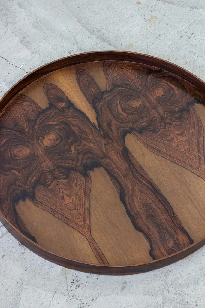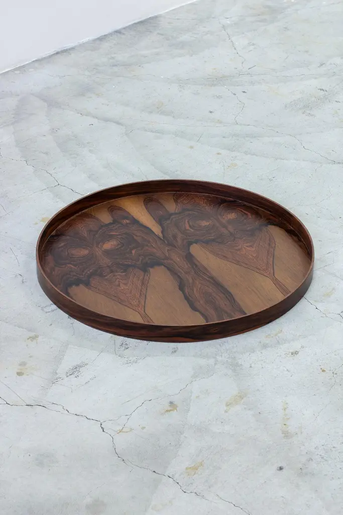 Large tray designed by Torsten Johansson. Made by Formträ AB in Sweden during the 1950s. Made from laminated rosewood. very good vintage condition with light age related wear and patina.Designer: Torsten JohanssonManufacturer: Formträ ABYear: 1950sCondition: Very goodDimensions: Ø. 62 H. 4 cm
