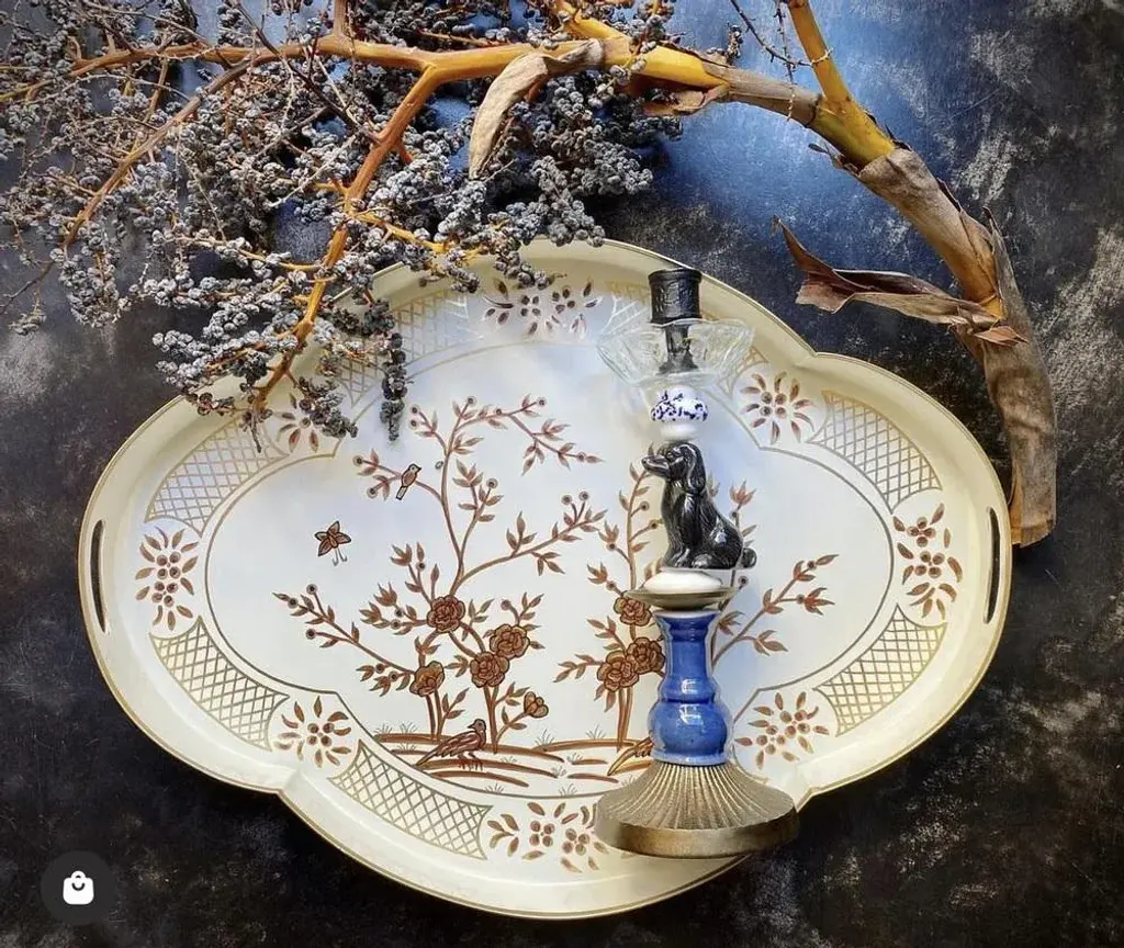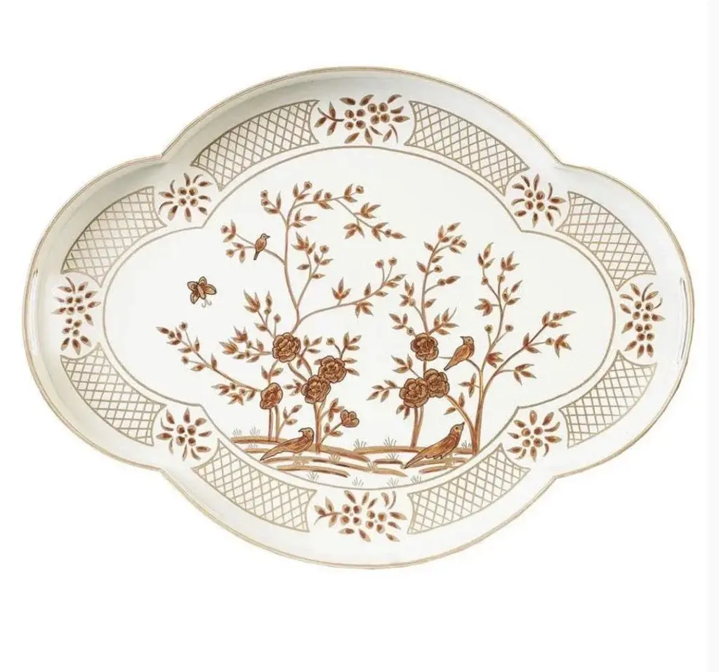 Large Oval Ivory Chinoiserie Tray By The Enchanted Home