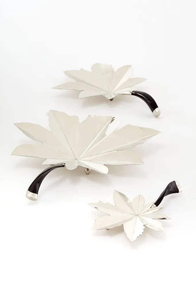 With its beauty and elegant movement and curves, the Tartaro leaf brings us the concept for this family of handmade trays with fine alpaca ang black horn. They are perfect for serving or to display as a decorative piece.Our pieces are made by hand. One of a kind.Natural horn may vary in color.