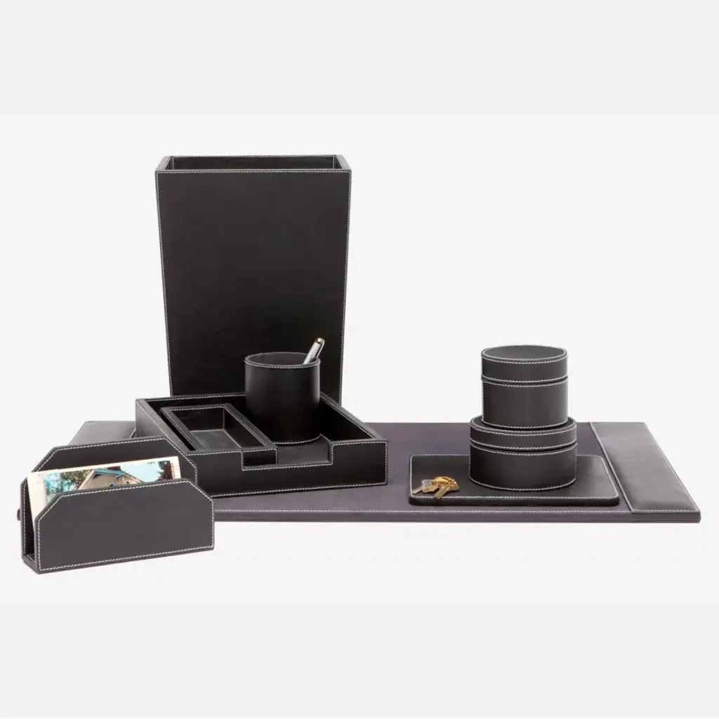 Larne Black Letter Tray Set Letter Tray: 12.5"l X 9.5"w X 2.5"h, Envelope Holder: 7.5"l X 2"w X 5"h, Pencil Holder: 4"d X 4"h, Pencil Tray: 10.5"l X 4"w X 1.5"h, Pencil Tray: 10.5"l X 4"w X 1.5"h