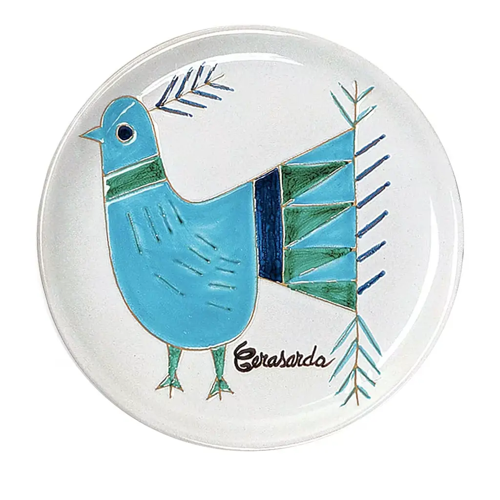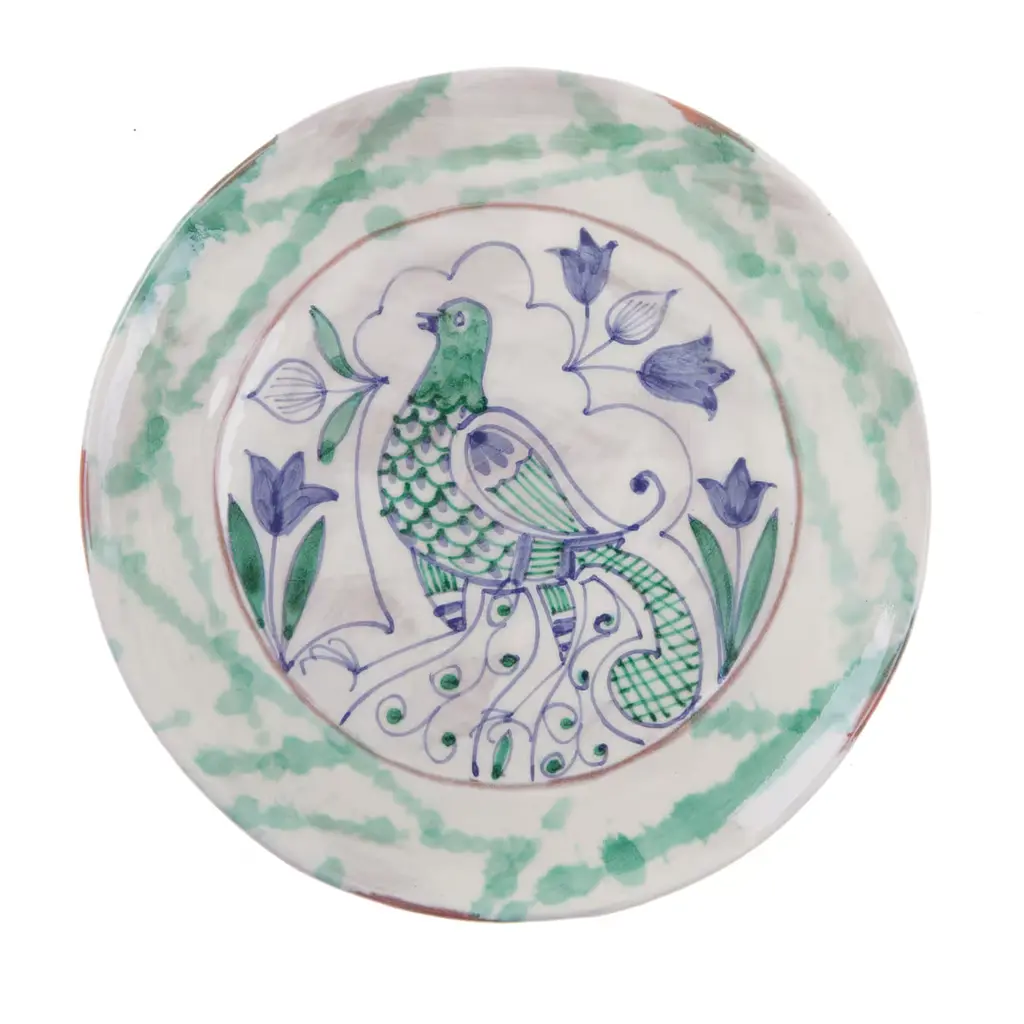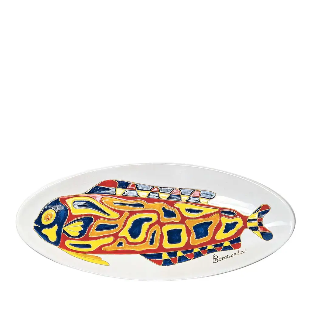 This superb oval tray crafted of fine ceramic boasts a polychrome decoration of a phoenix, a sacred bird for the Egyptians and a symbol of rebirth since ancient times. Its detailed silhouette - minutely engraved and painted by hand in vibrant, assorted hues - emerges from the pure-white backdrop that is further accented with turquoise flowers along the rim. Perfect to bring joyful character to a dull tableware collection.