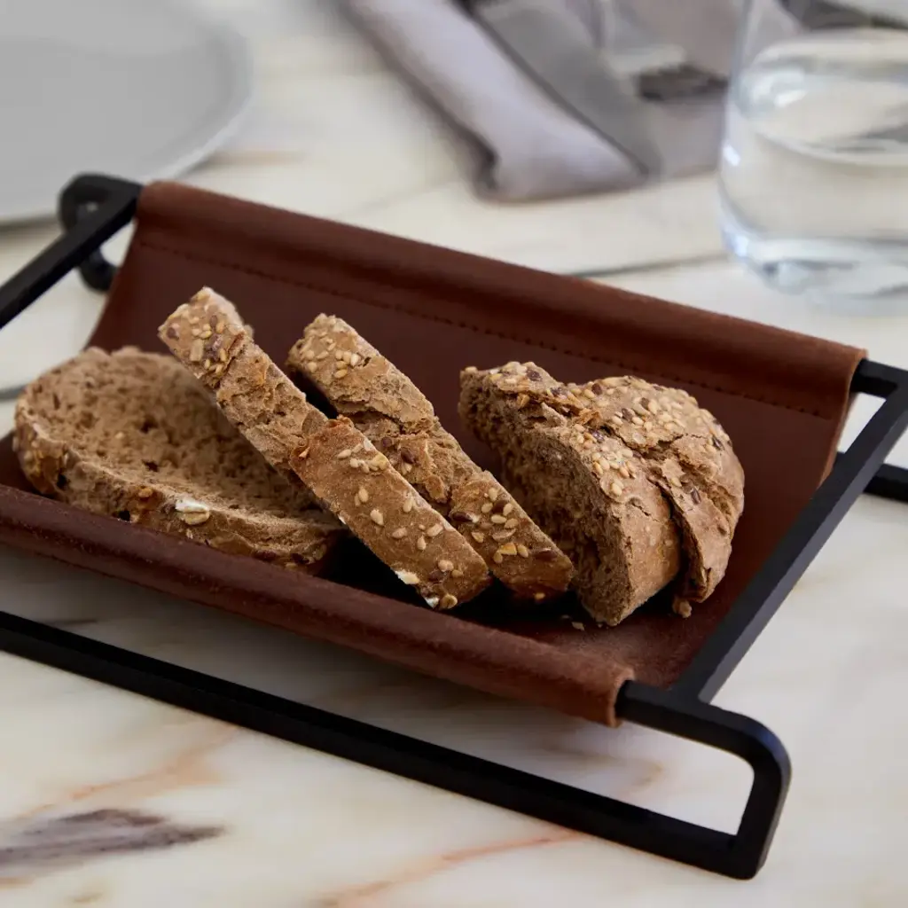 Leather Collection Brown Leather Tray/basket 10'' X 6.75'' H1.5''
