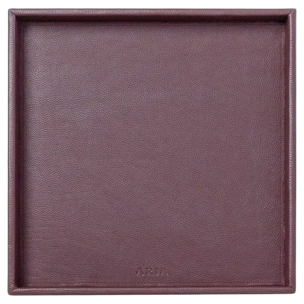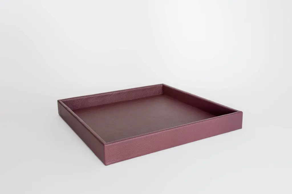 Leather Tray, Large A Square Tray, Handmade - Color: Wine