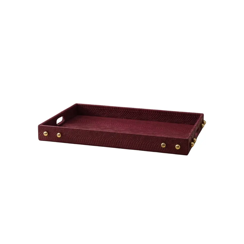 Leather Tray, Large B Retangular Tray, Handmade - Color: Wine