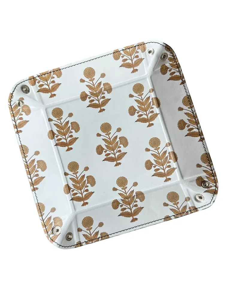 Leather Trinket Tray With Brown Motifs