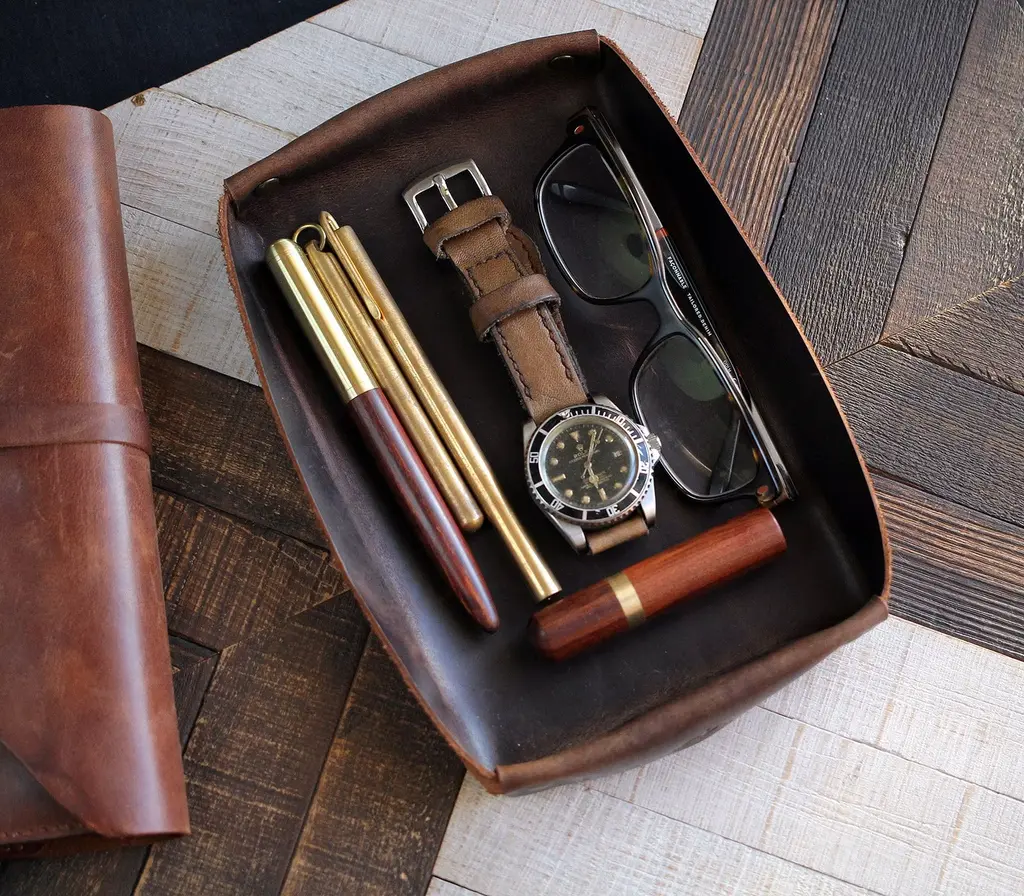 Leather Valet Tray - Set Of 2 - Brown