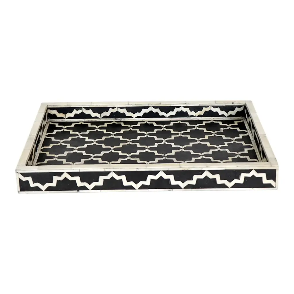 A beautiful, simple way to add a little organization to your bathroom, bedroom or kitchen, this bone-inlaid tray features a traditional design and sturdy medium-density fiberboar. Size 14"" x 20" x 2" H Solid wood frame; bone inlay Each tray is one of a kind. Imported.